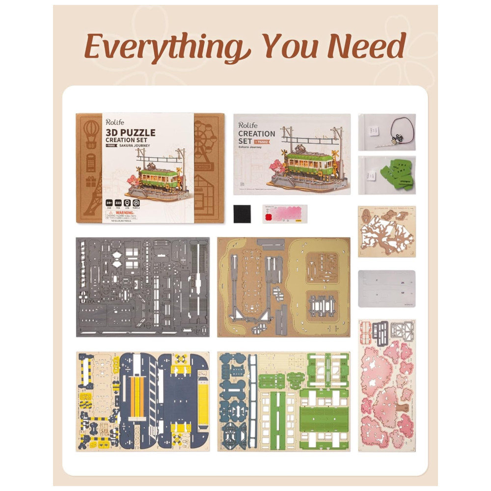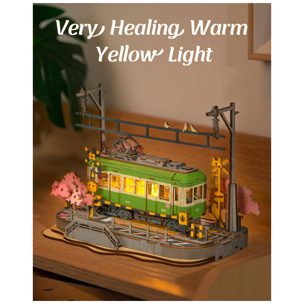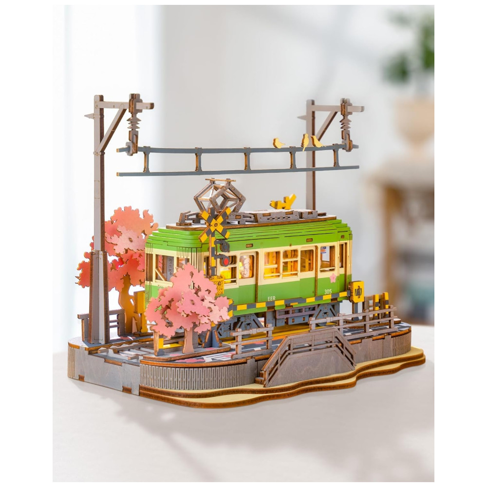 Um bonde verde de madeira 3D inspirado em mangá de cura é a escolha perfeita para quem busca uma experiência única de montagem de quebra cabeça.
