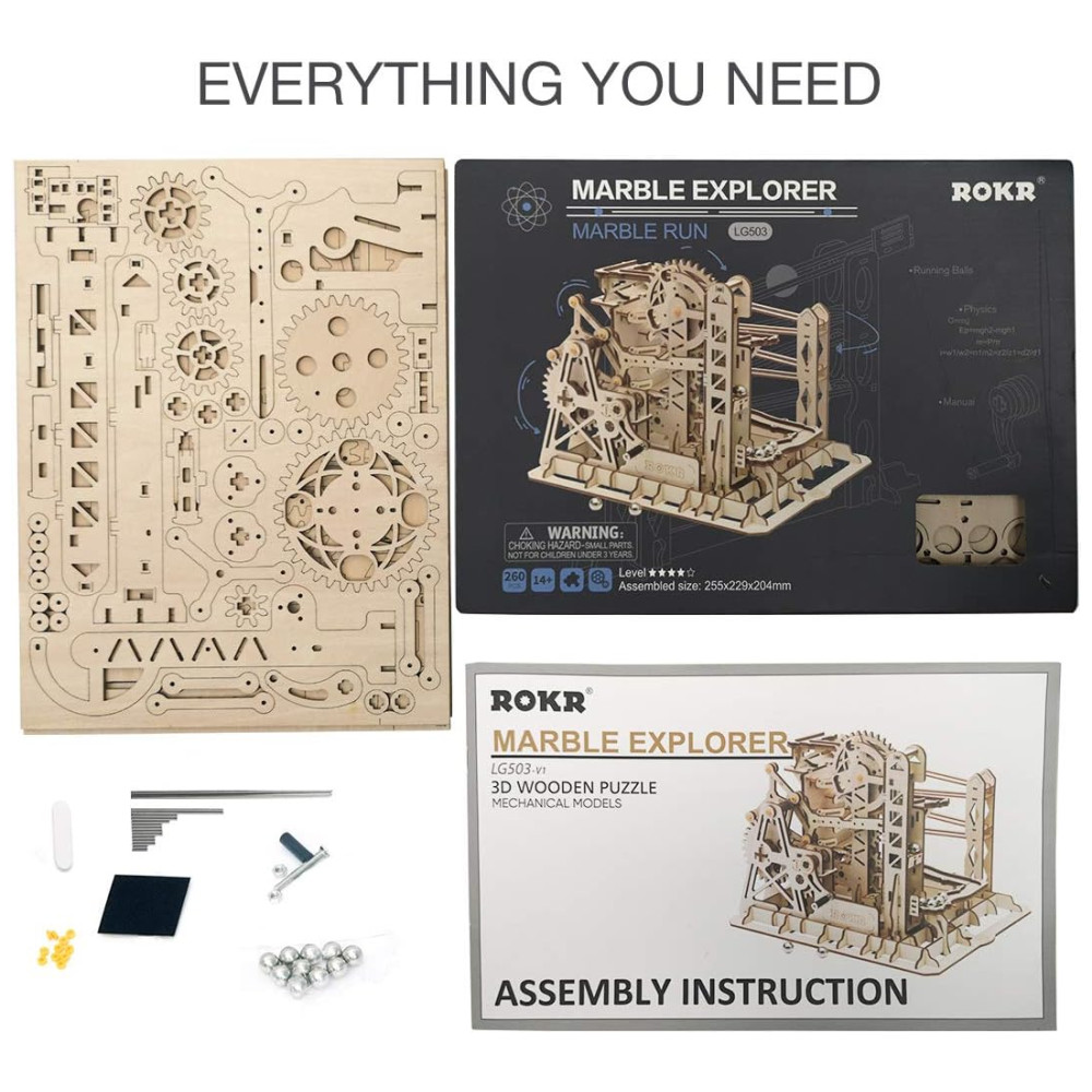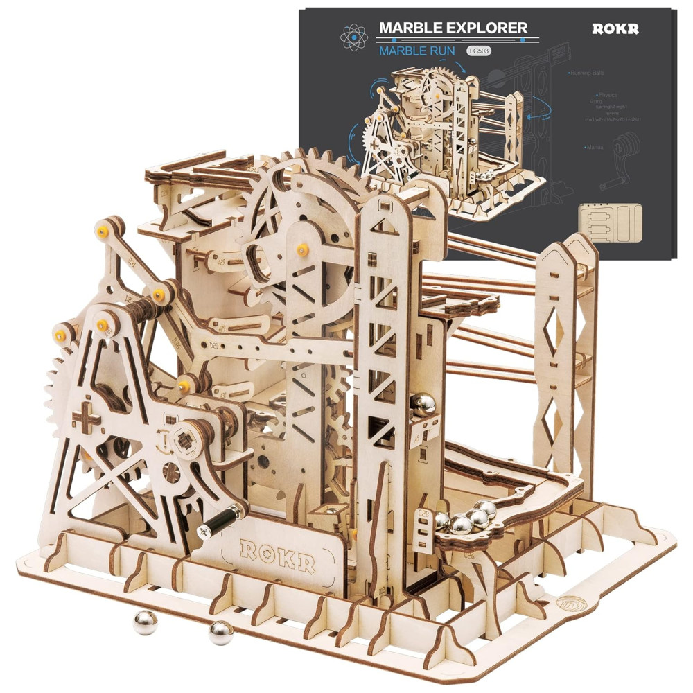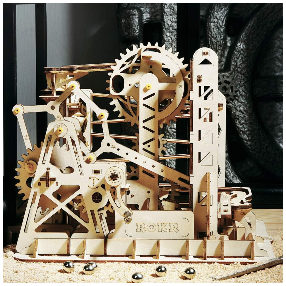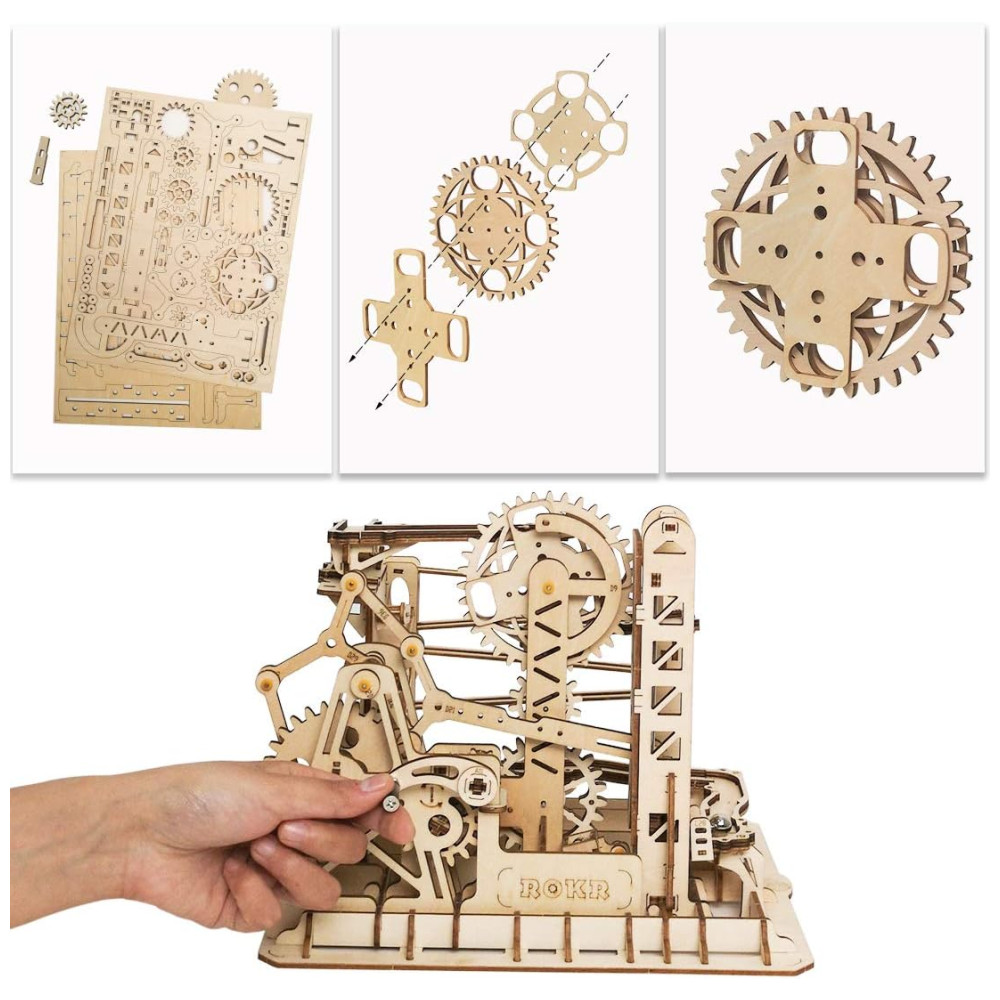 Quebra Cabeças 3D em Madeira para Adultos Tema MONTANHA-RUSSA Mecânica com 260 Peças ROKR Marrom