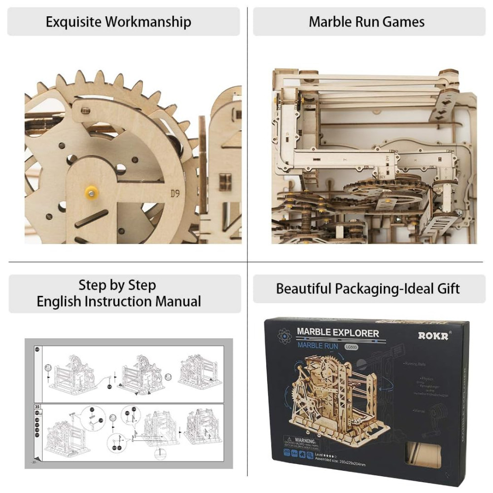 O kit de artesanato em madeira 3D da Lift Coaster é uma verdadeira montanha-russa de quebra-cabeças, inspirada em mecanismos da vida real onde a bola pode ser rolada ao longo da pista após a montagem. Projetado para adolescentes e adultos com 16 anos ou mais, este conjunto permite construir um quebra-cabeça de mármore 3D, promovendo habilidades de planejamento e construção como um verdadeiro arquiteto ou engenheiro.