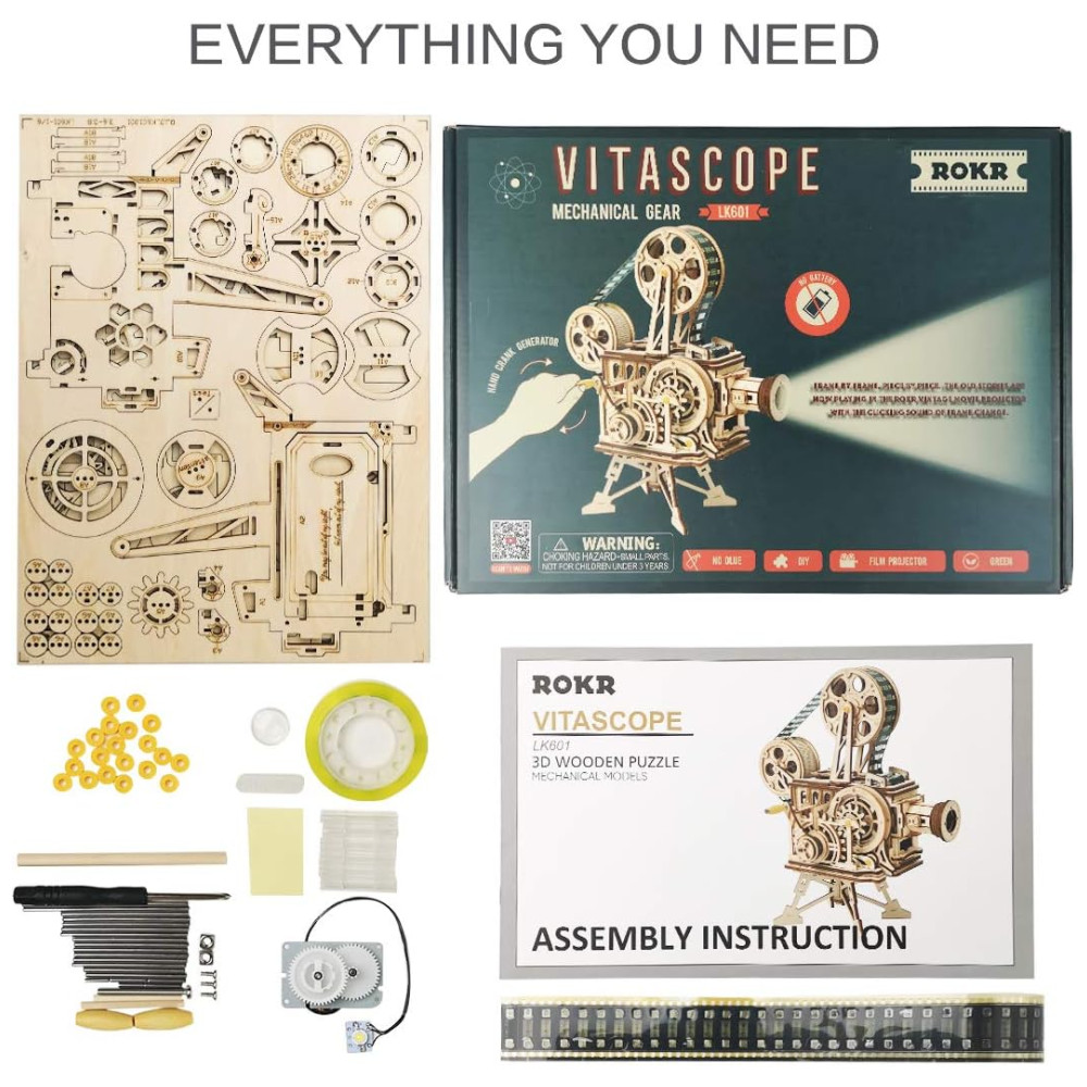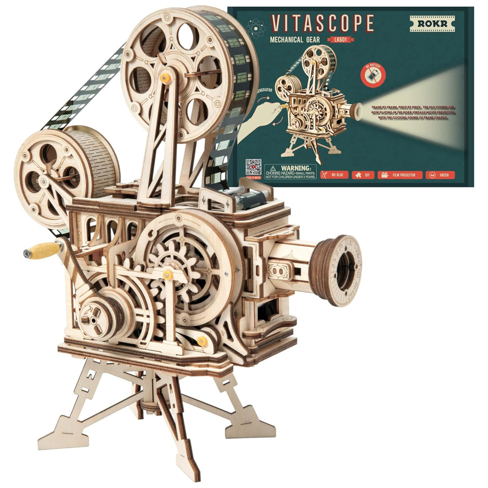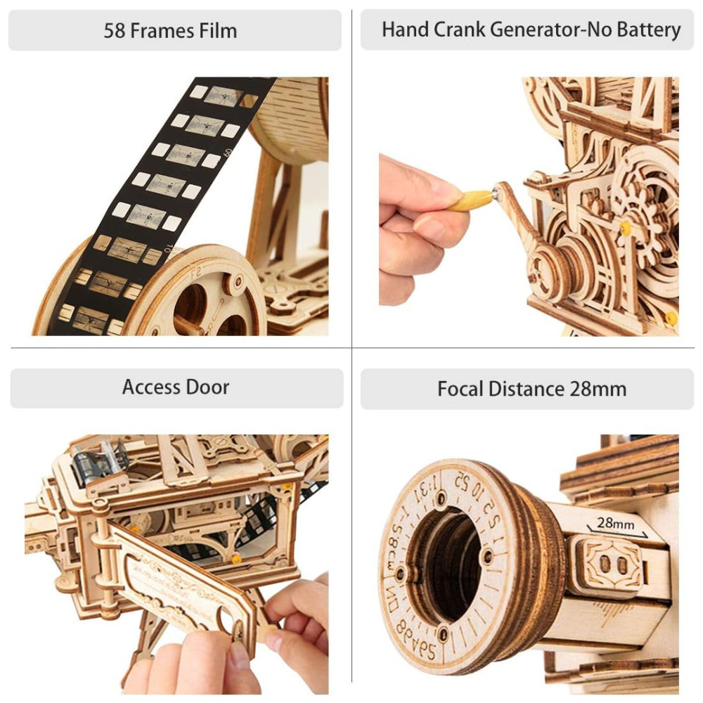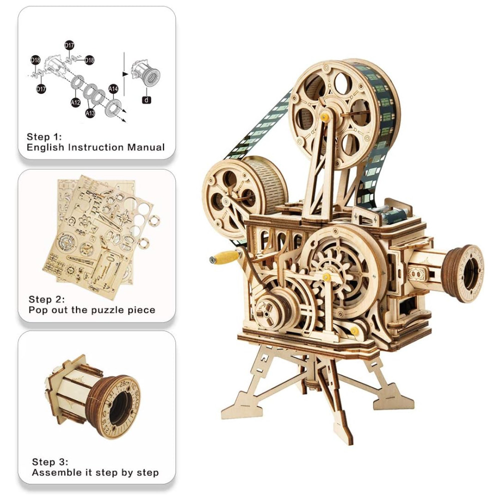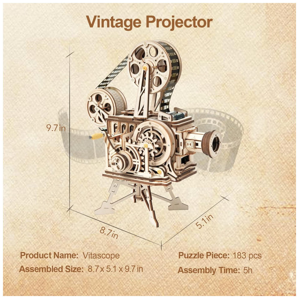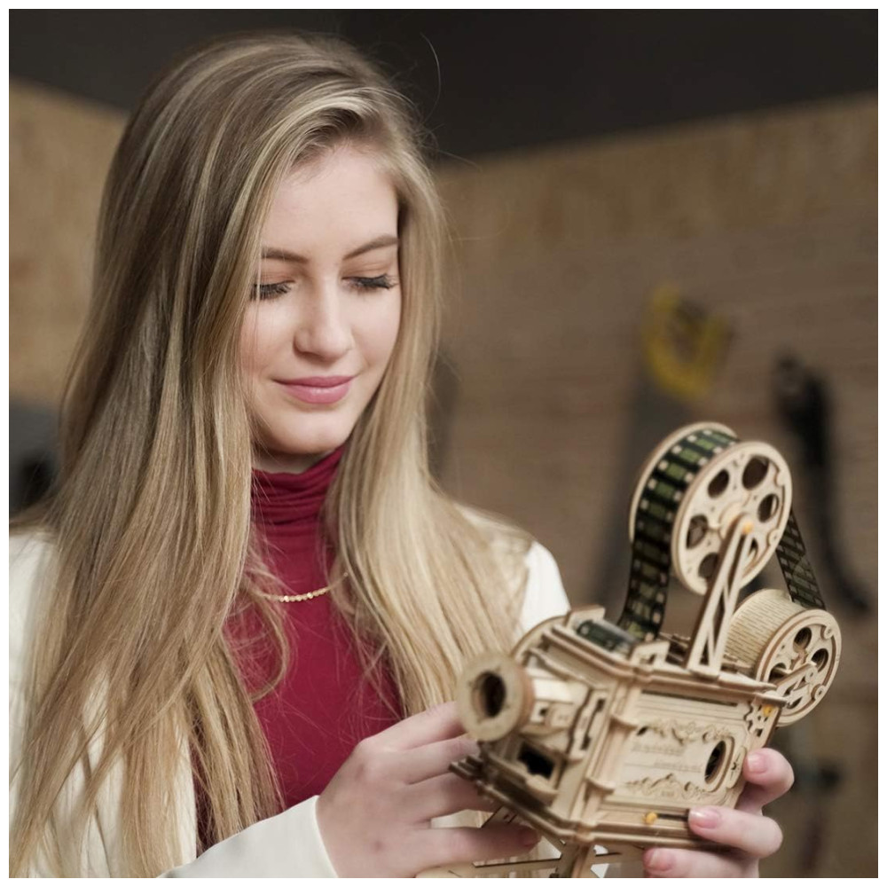 Quebra Cabeças 3D em Madeira para Adultos Tema Projetor Vintage com 183 Peças ROKR Marrom