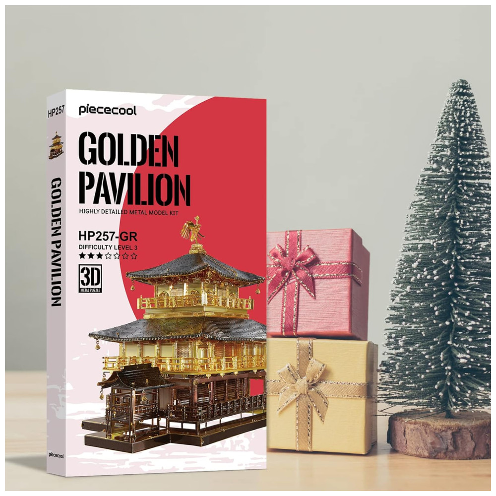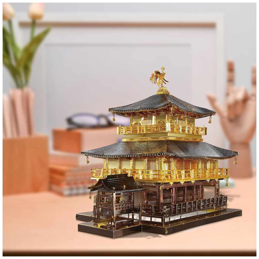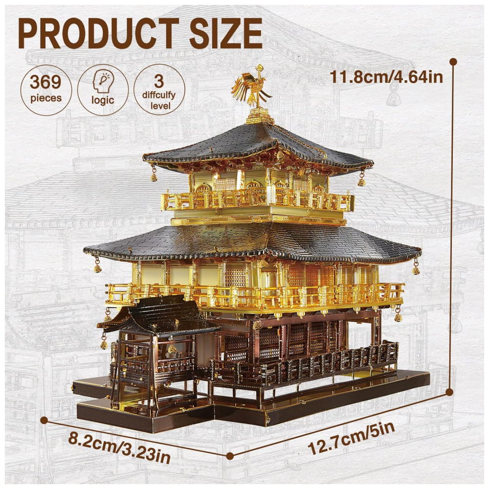 Quebra Cabeças 3D em Metal para Adultos Tema Templo Dourado Kinkaku-ji com 369 Peças Piececool