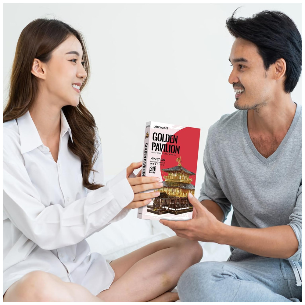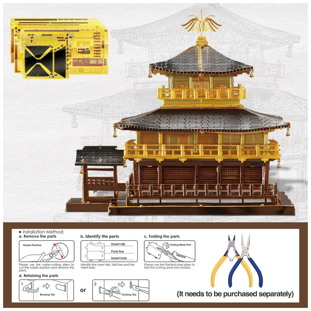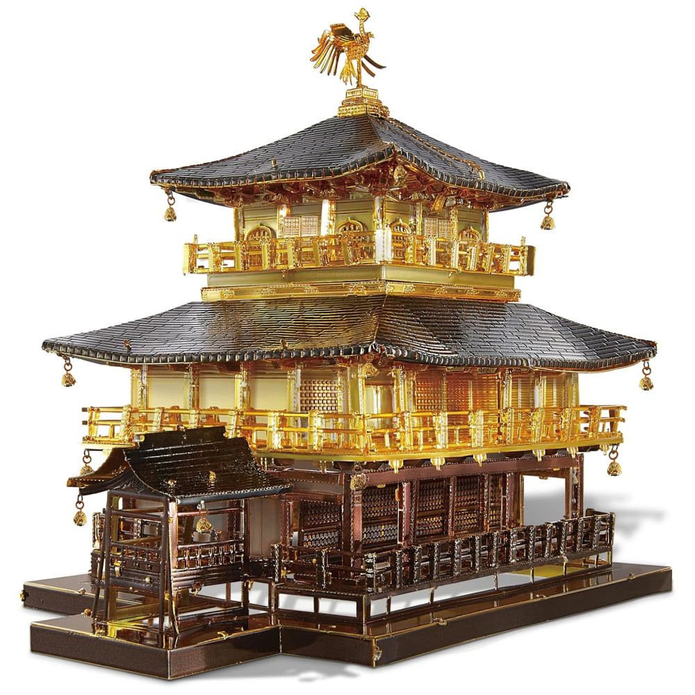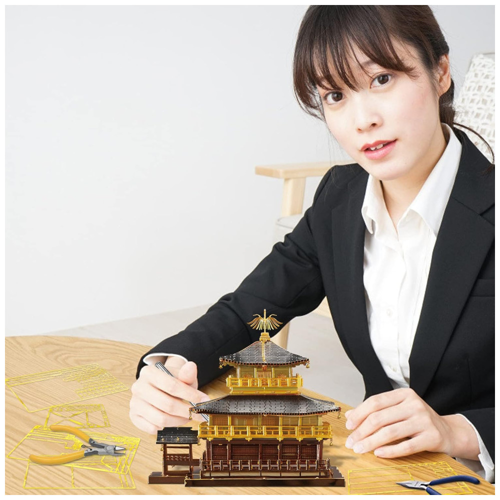 Quebra Cabeças 3D em Metal para Adultos Tema Templo Dourado Kinkaku-ji com 369 Peças Piececool