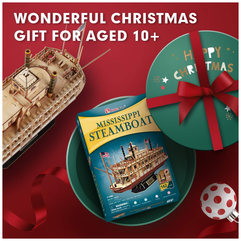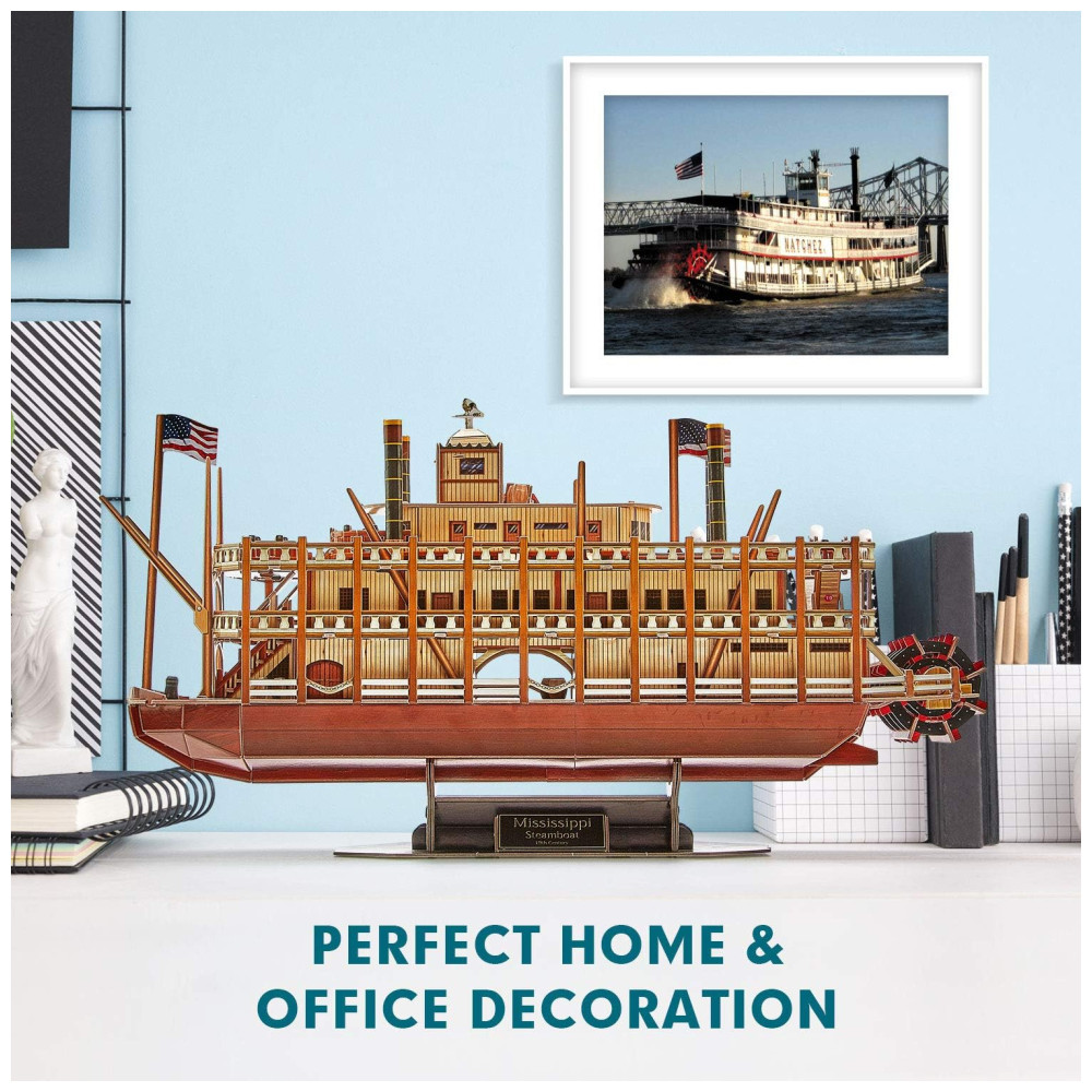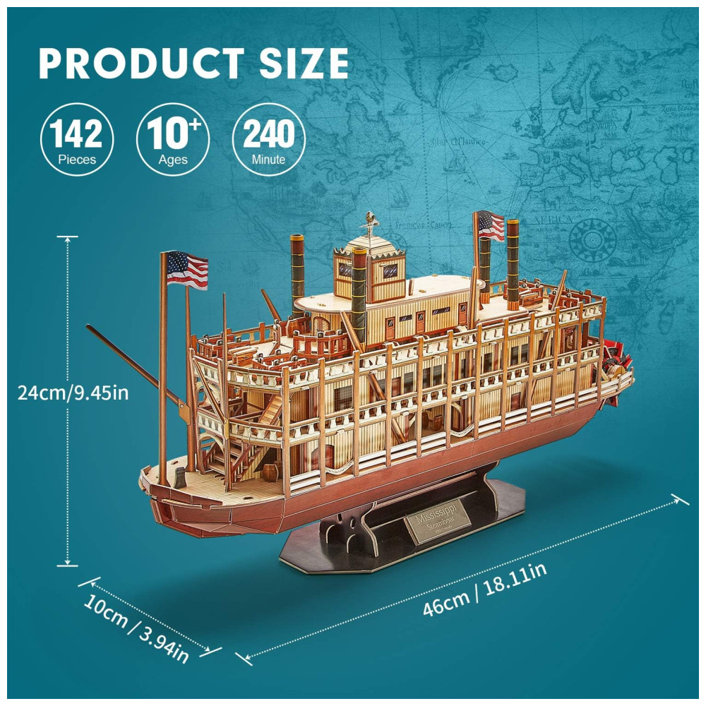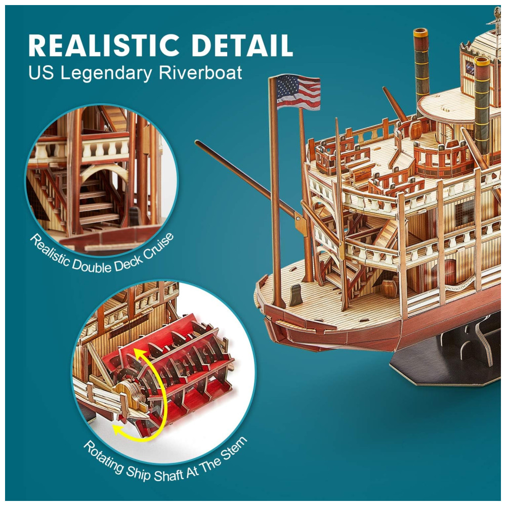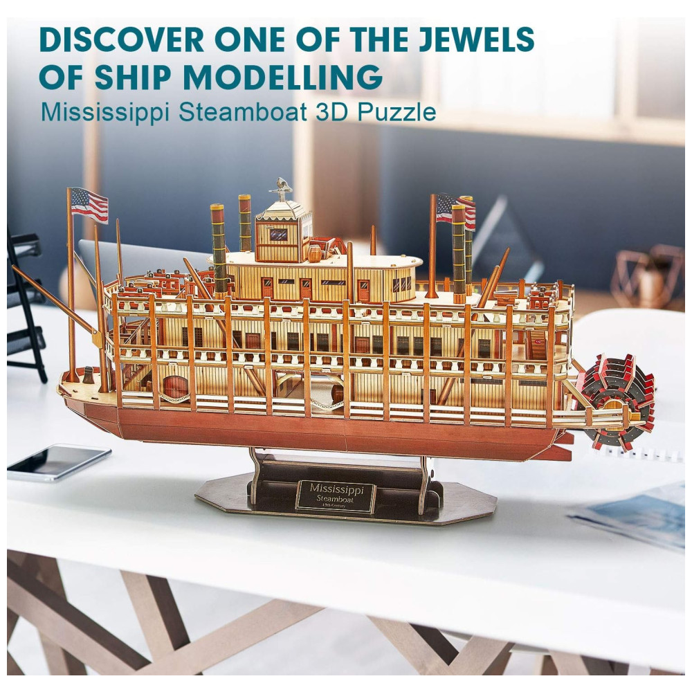 Quebra Cabeças 3D para Adultos Tema Navio Mississippi com 142 Peças CubicFun Marrom