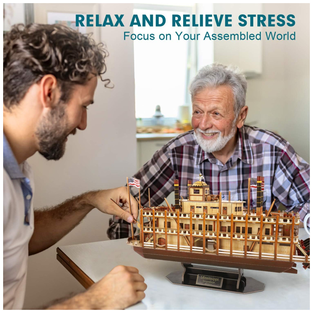 Com o kit de modelo 3D da CubicFun, mergulhe na era dourada dos navios a vapor do Mississippi com o autêntico e detalhado navio de dois andares. Este conjunto inclui 142 peças que se encaixam perfeitamente, sem a necessidade de cola ou ferramentas, proporcionando uma montagem intuitiva e precisa. As instruções detalhadas garantem que você possa construir o modelo com paciência e cuidado, esperando uma conclusão em cerca de 46 horas.