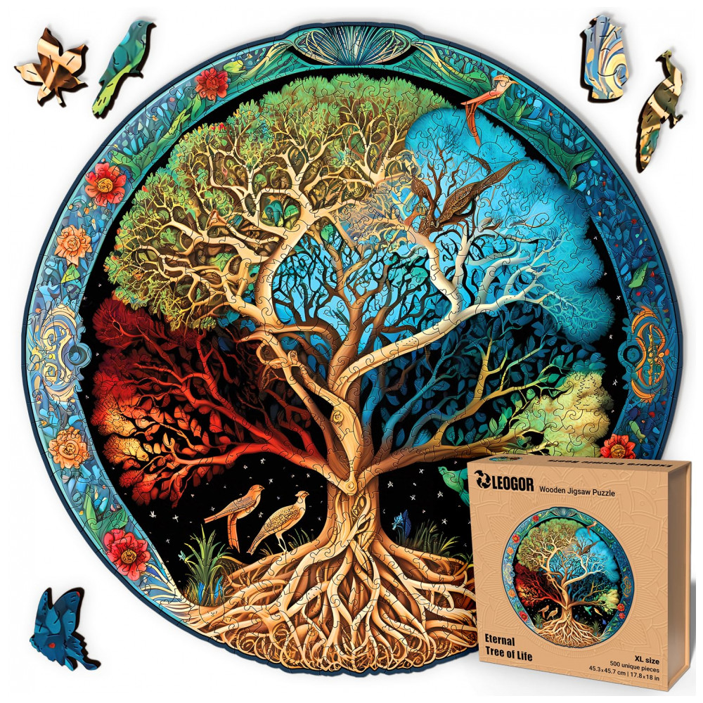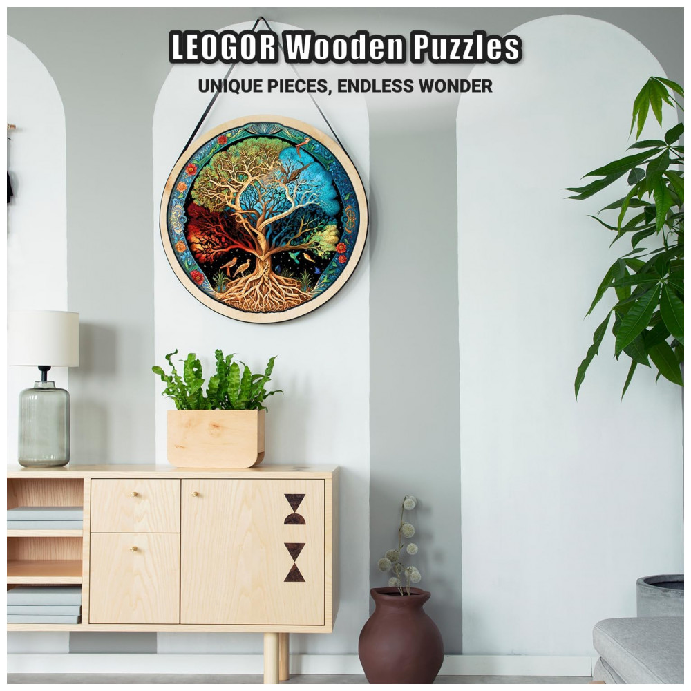 Quebra Cabeças em Madeira MDF para Adultos Tema Árvore da Vida com 500 Peças LEOGOR Colorida
