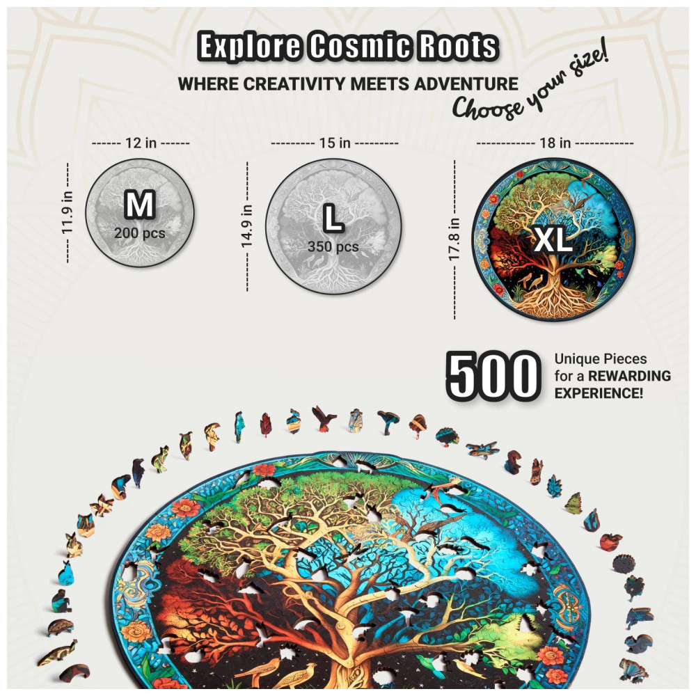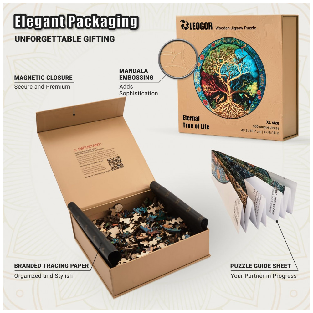 Com peças resistentes de 5 mm em formato de animais, insetos, árvores e plantas, cada formato de arte incomum e cor dos quebra cabeças irregulares de 500 peças encantam com a magia de sua alta qualidade e durabilidade.