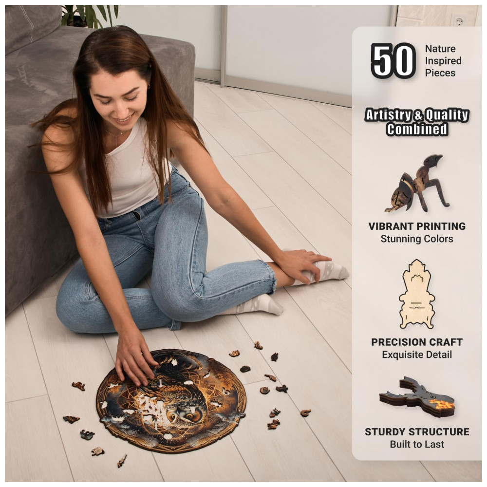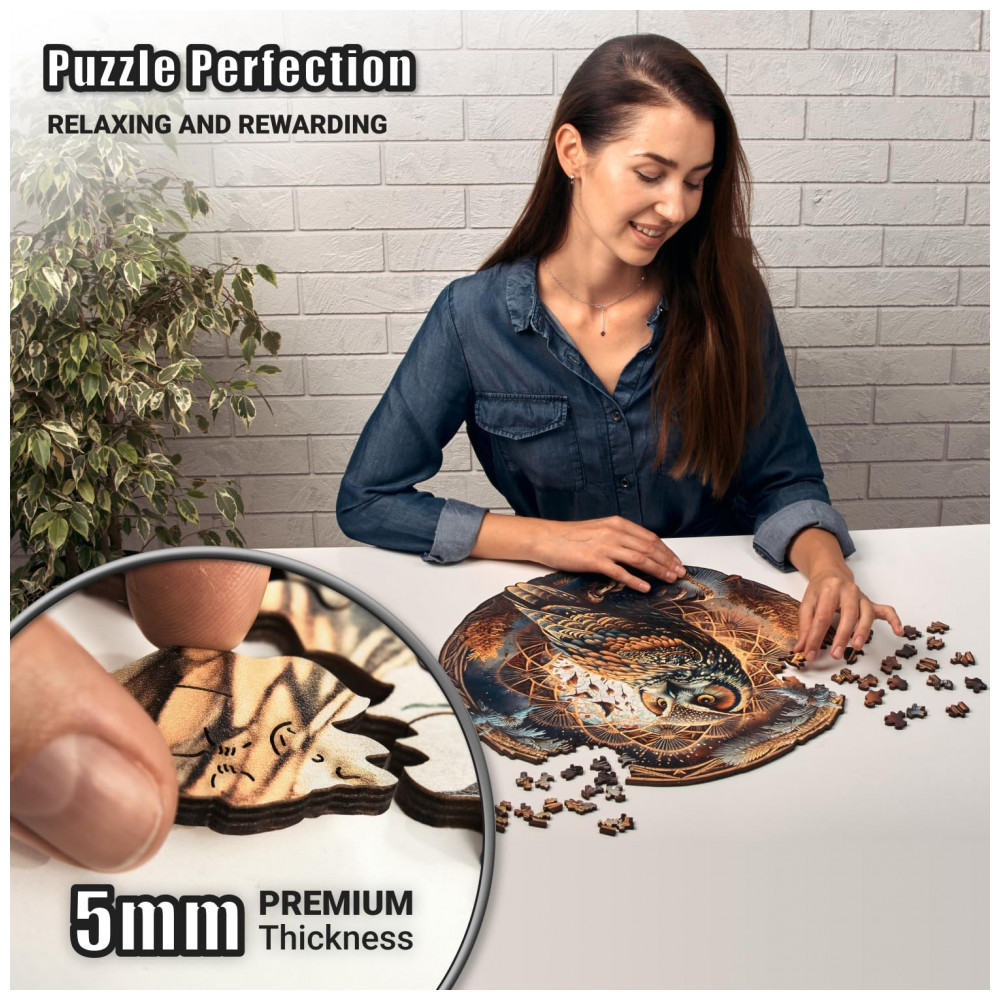 Este quebra cabeça de madeira é uma aventura emocionante, com uma imagem de coruja misteriosa e desafiadora. É uma atividade divertida que une pessoas em harmonia, combinando a fantasia da natureza com a alegria de resolver um quebra cabeça.