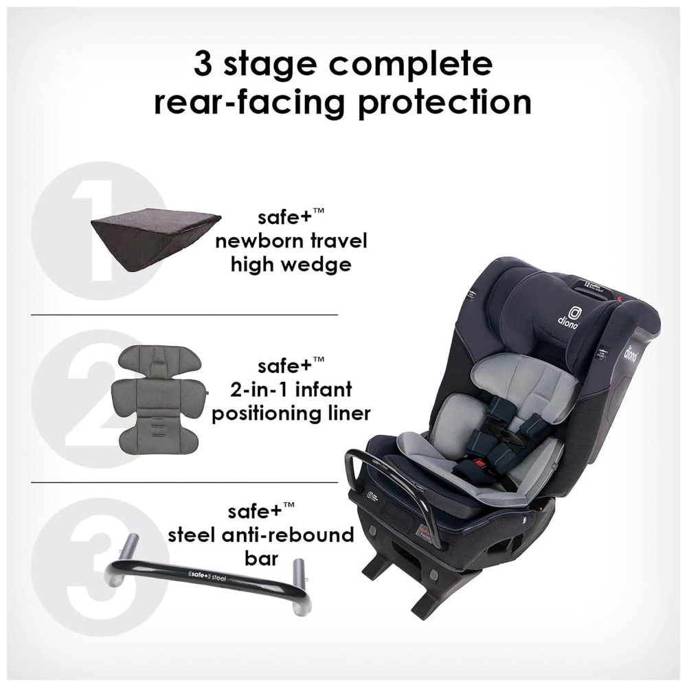 PROTEÇÃO 3 em 1 PARA RECÉM NASCIDO DE 1,8 kg Oferece a posição de deslocamento horizontal perfeita, arnês ajustável e almofadas de arnês anti deslizantes completas com barra de aço anti ricochete Safe para reduzir a rotação de ricochete em 50. Segurança de 3 maneiras diferentes voltado para trás, voltado para frente e modo de reforço