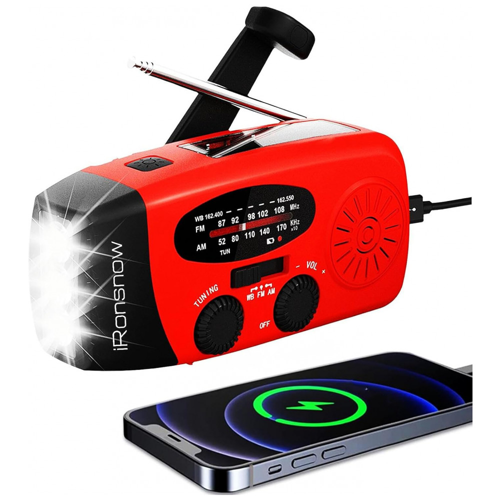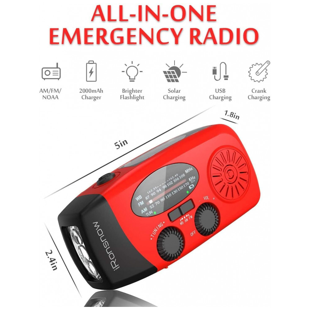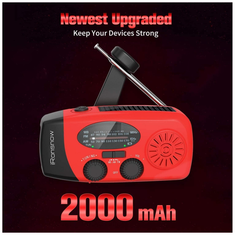 Você obtém Rádio Compacto de Sobrevivência Tamanho 5 x 1,8 x 2,4 polegadas, rádio de emergência iRonsnow, cabo Micro USB, manual do usuário e UM ano de garantia de troca
