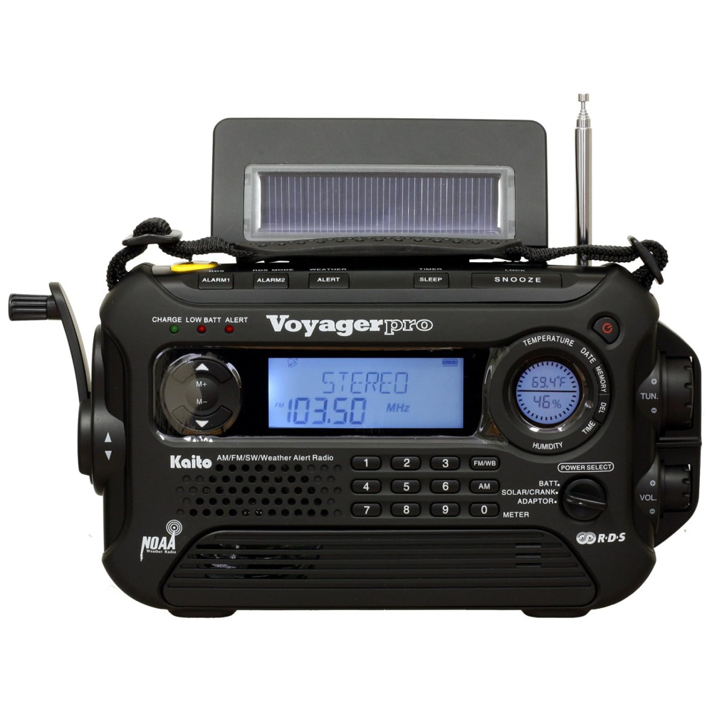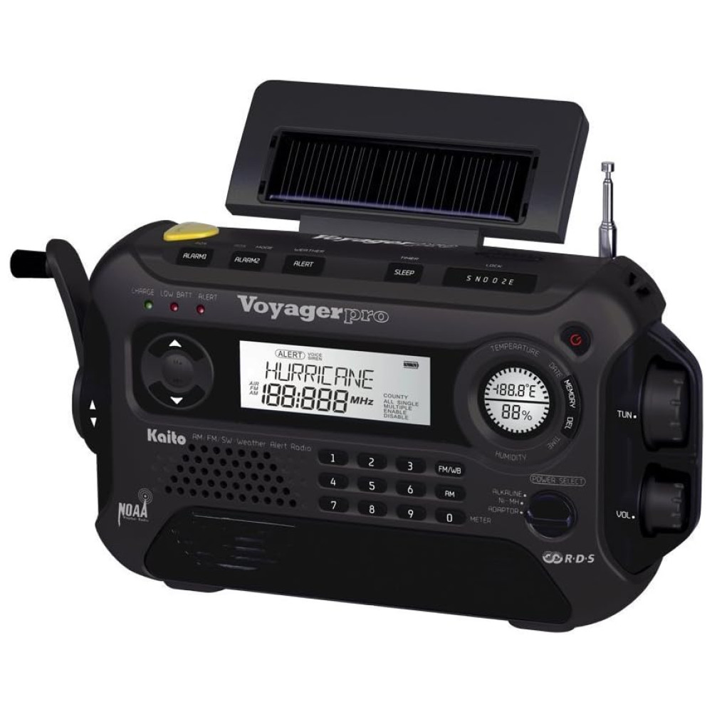 Rádio AM FM NOAA Portátil e Recarregável via Manivela Solar USB KAITO KA600 Preto