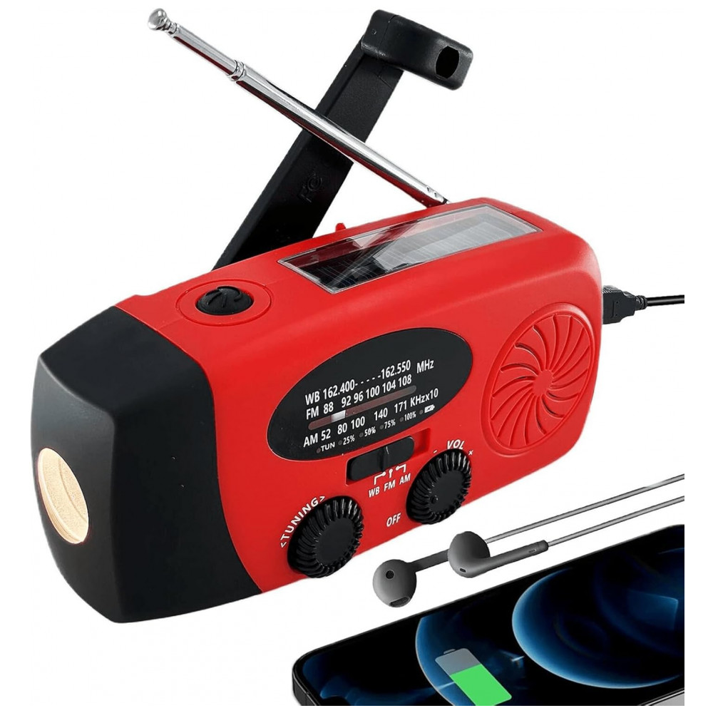 Rádio AM FM WB e NOAA 1000mAh com Bateria Solar ou Manivela de Recarga USB IRONSNOW IS 088 Vermelho