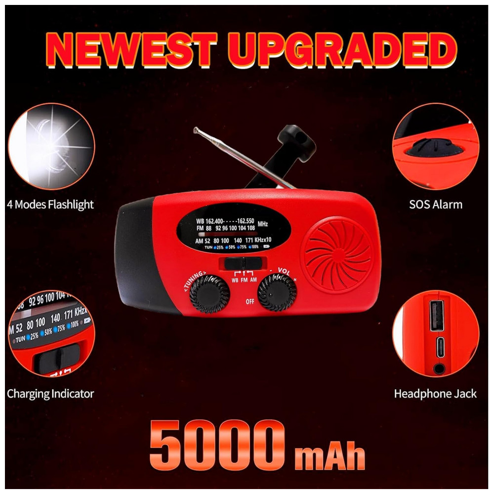 2021 Atualizado iRonsnow criou este rádio de emergência clássico e atualizou para banco de potência de 2000mAh, para carregar o iPhone , smartphone via cabo Micro USB diretamente quando você precisar.