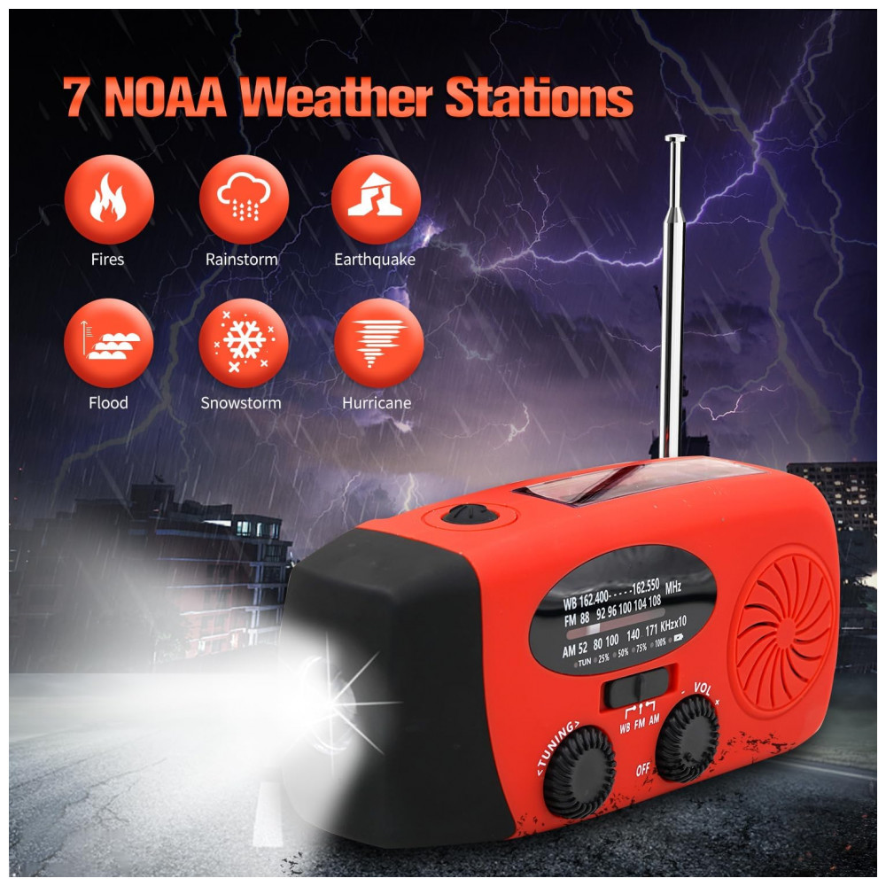 Indicador de carga Adicione o indicador de carga para saber o nível de carga a qualquer momento, 4 luzes significam 25 50 75 100 da energia. Imprescindível para uma emergência, leve este rádio meteorológico de emergência AM , FM , NOA com você a qualquer hora. Um dispositivo específico projetado para receber avisos de emergência para vários eventos climáticos como trovoada, inundação, tempestade de neve, furacões, tsunamis.