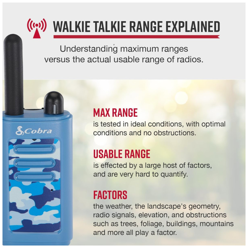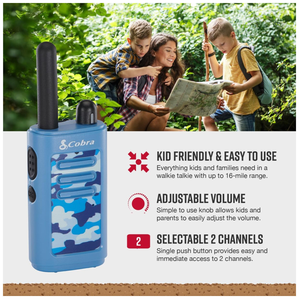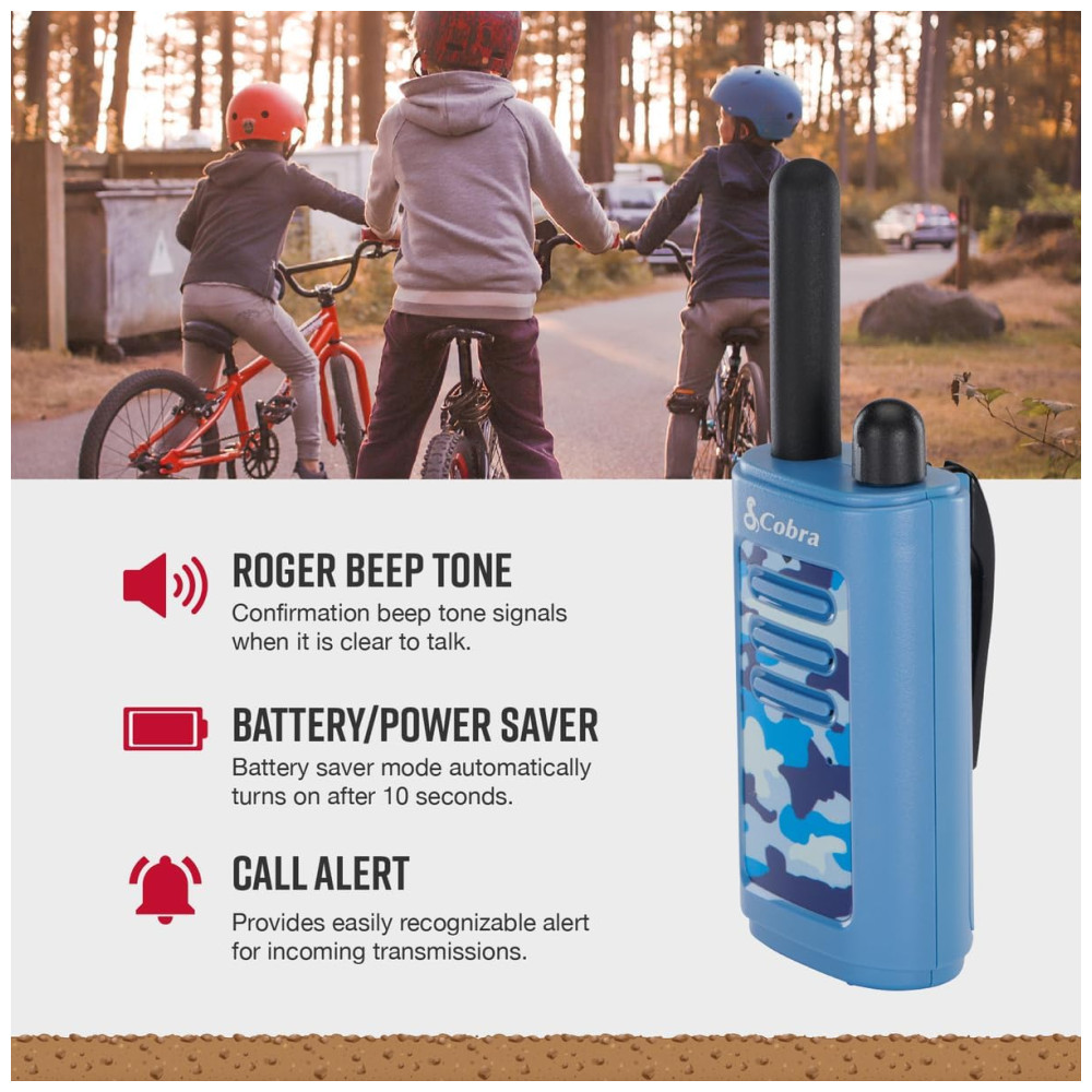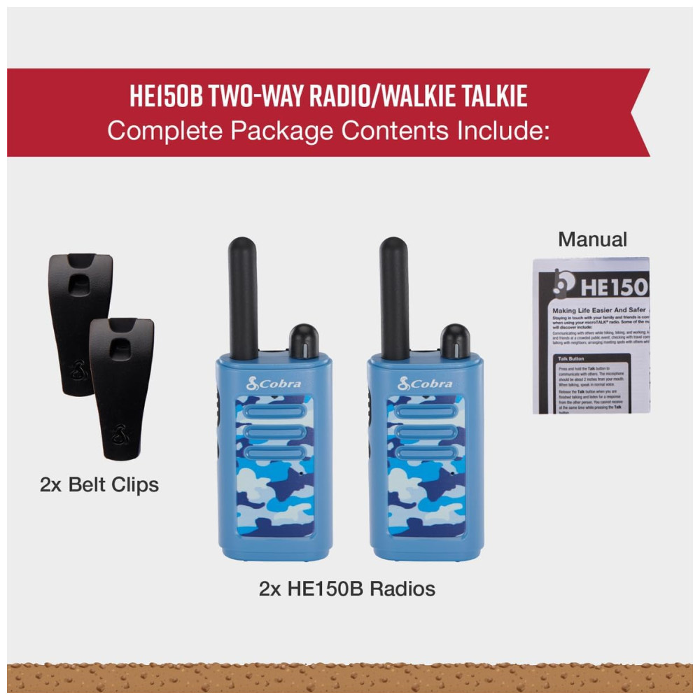 Rádio Comunicador Walkie Talkie Cobra HE150 B – Infantil Alcance de 25 km 2 Canais Rádio de 2 Vias (2 Unidades) Azul.