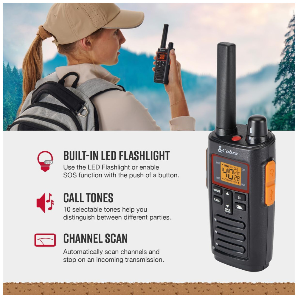 Rádio Comunicador Walkie Talkie Cobra RX380 Recarregável 40 Canais Pré-definidos Rádio Bidirecional de Longo Alcance de 515 km