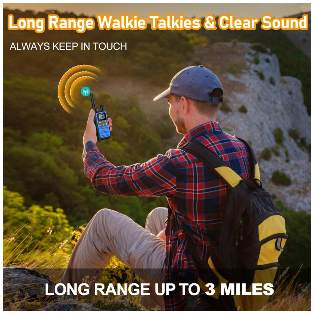 Estes rádios walkie talkies possuem longo alcance. Com 22 canais e 121 códigos de privacidade, há 2.662 combinações seguras disponíveis. Eles são compatíveis com qualquer marca de walkie talkies para adultos que usem o mesmo canal e código de privacidade.