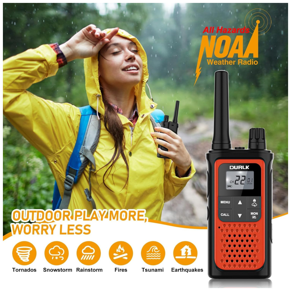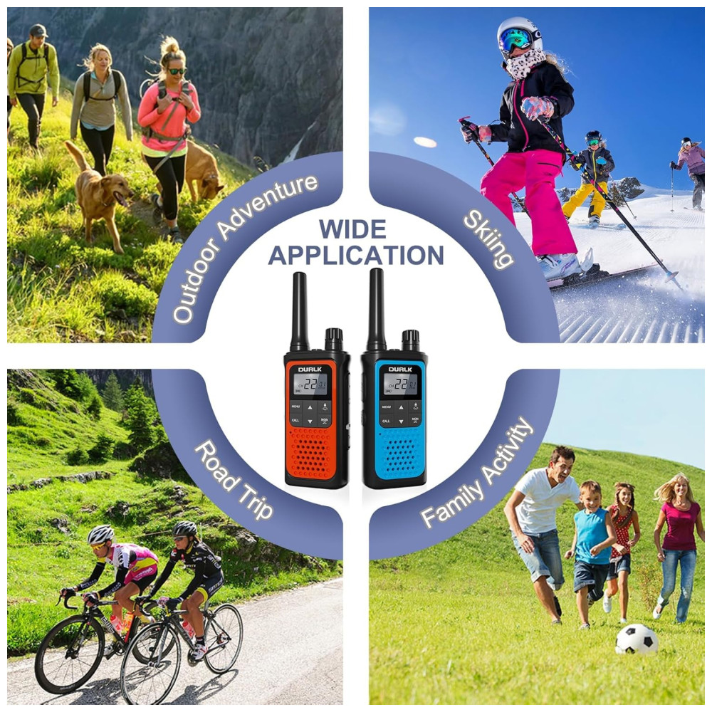 Este pacote inclui 2 walkie talkies recarregáveis e é adequado para uma variedade de cenários ao ar livre, incluindo esqui, caminhadas, ciclismo, acampamentos, viagens rodoviárias, cruzeiros, negócios e locais de trabalho. Estes rádios walkie talkies bidirecionais DURLK são ideais para todas as idades e são seus parceiros confiáveis para qualquer aventura ao ar livre.