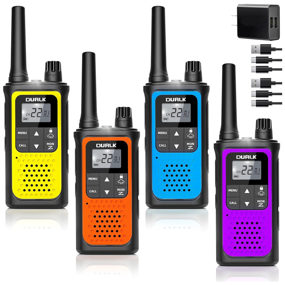 Rádio Comunicador Walkie Talkie Durlk Recarregáveis de Longo Alcance 4 Unidades para Adultos Rádio Bidirecional 22 Canais FRS Bateria