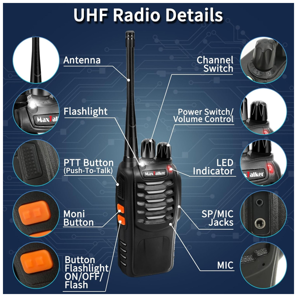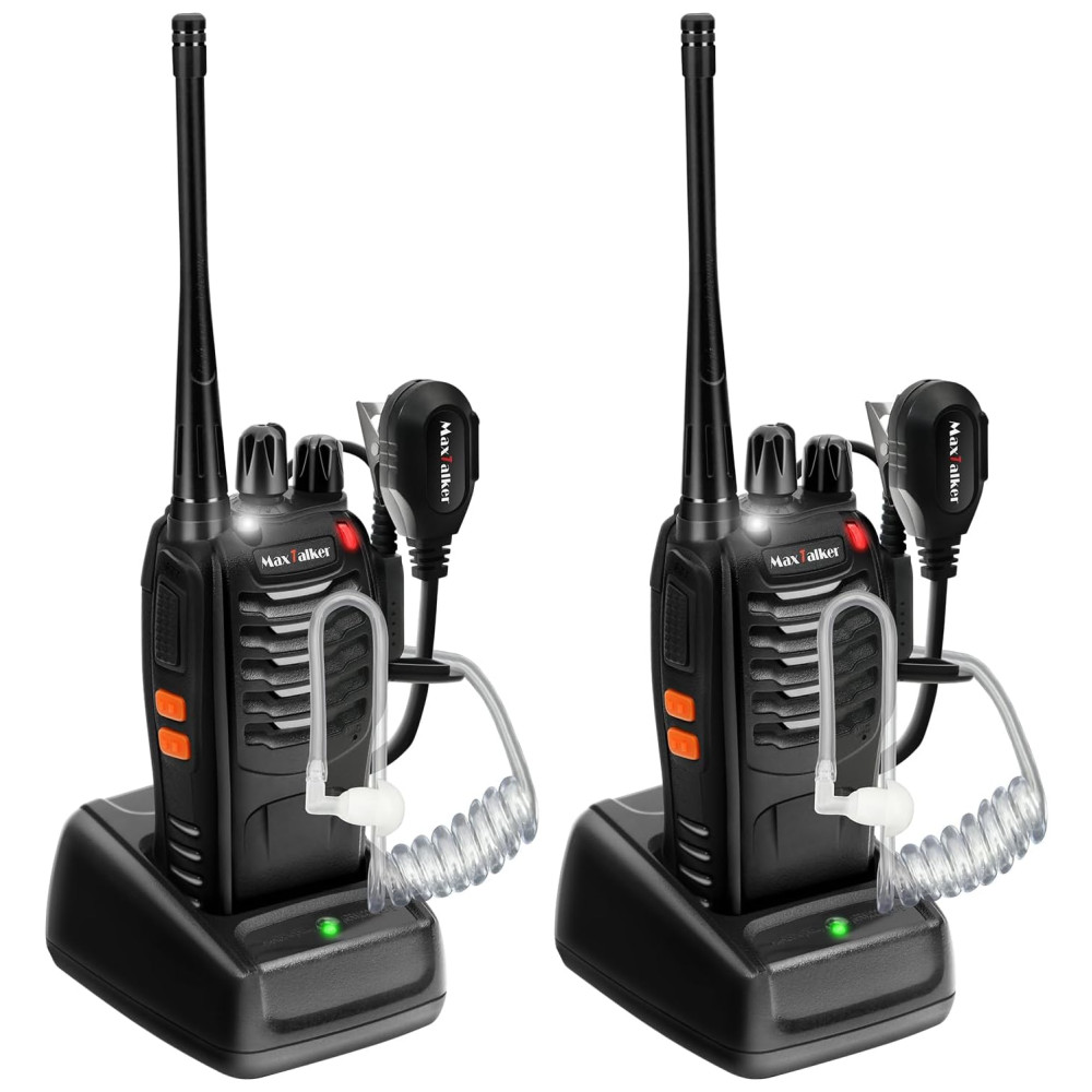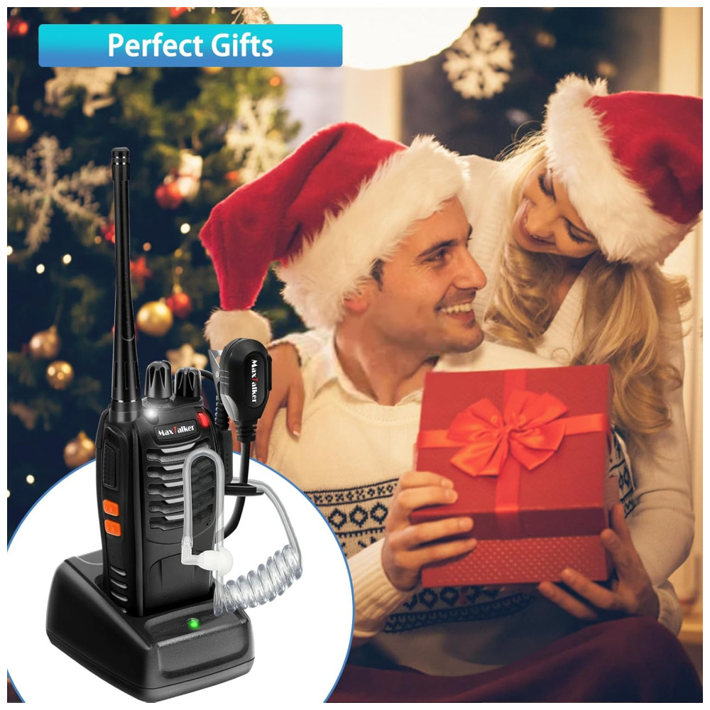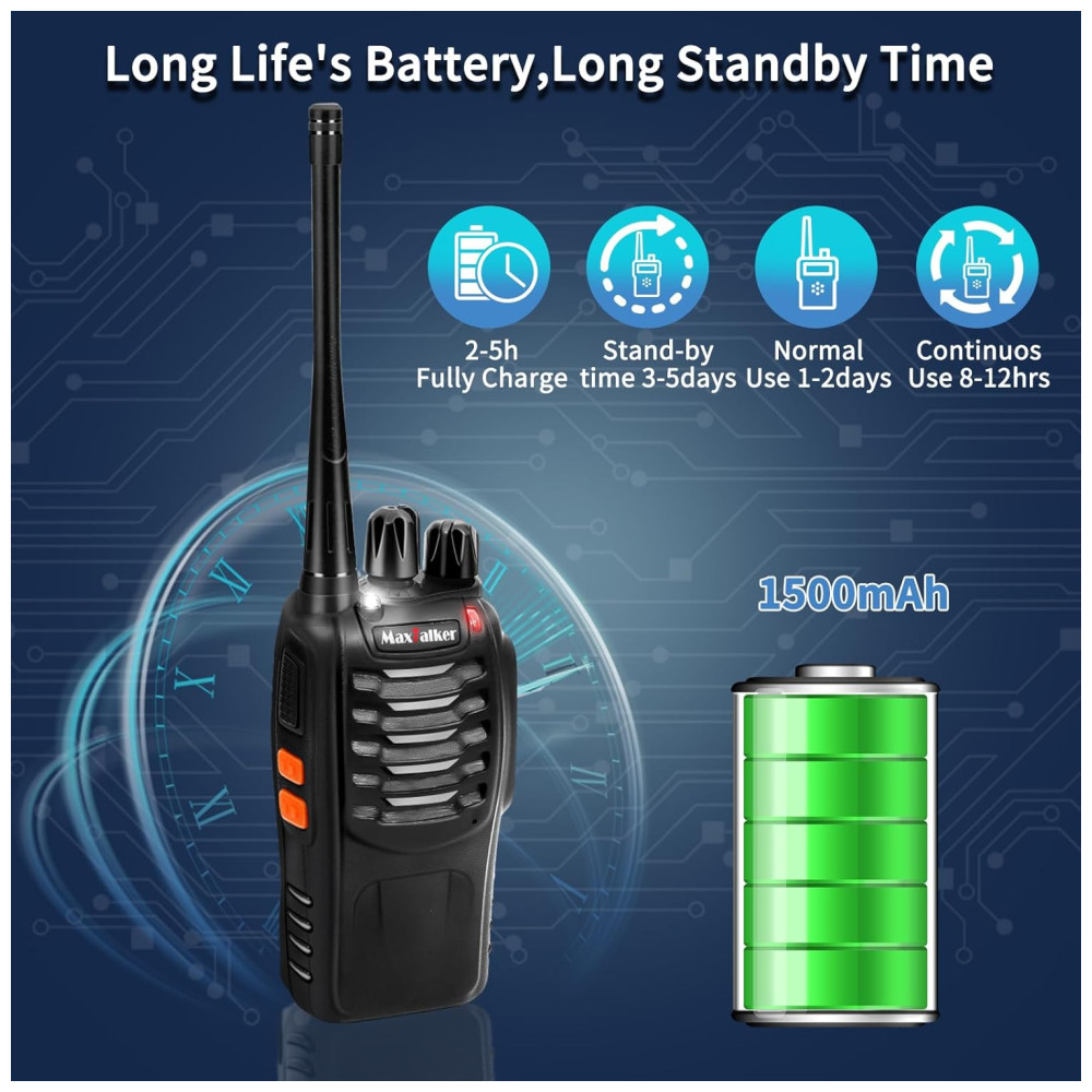 Os walkie talkies MaxTalker para adultos são projetados com chip independente que oferece sinal estável e podem atingir cerca de 4 milhas em áreas abertas onde não há obstáculos. Além disso, o fone de ouvido atualizado é projetado com tubo acústico de ar e fones de ouvido intra auriculares de silicone, garantindo que suas chamadas sejam cristalinas em ambientes barulhentos e mais confortáveis de usar.