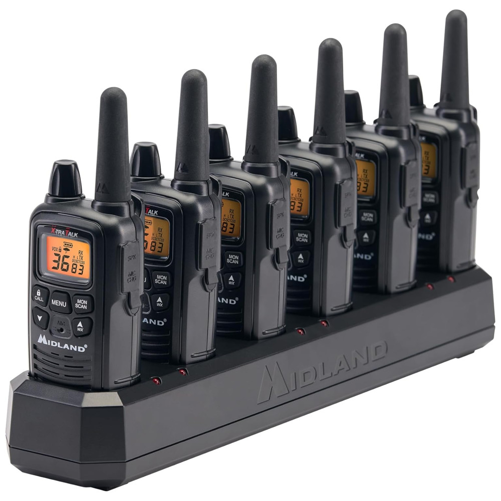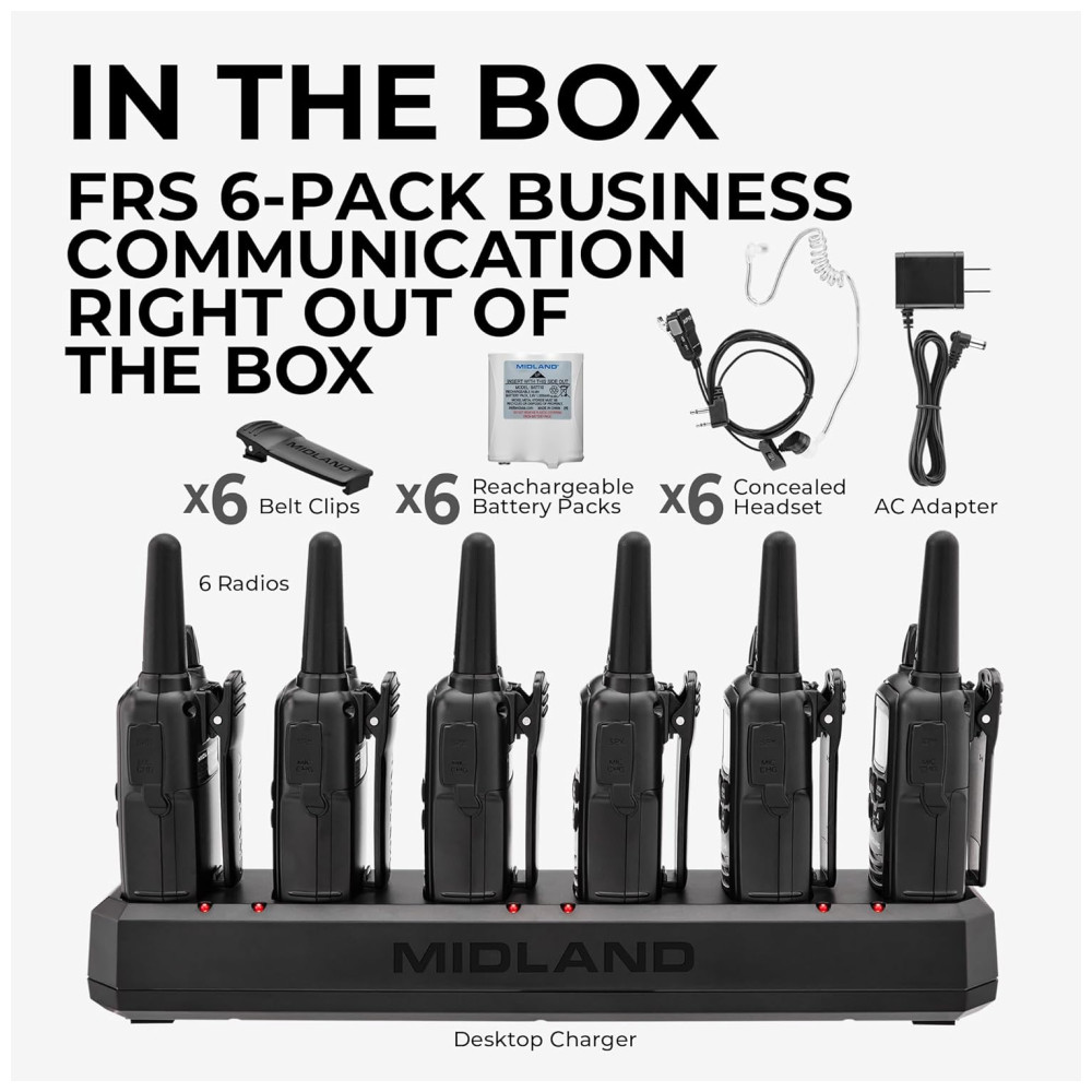 Rádio Comunicador Walkie Talkie Midland Recarregáveis com Base de Carregamento Fone de Ouvido Leves e Compactos Ideais para Comércio(6 Unidades).