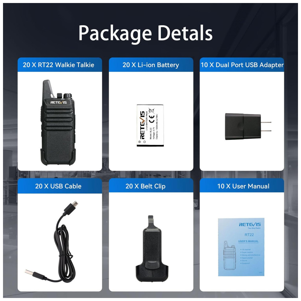 Rádio Comunicador Walkie Talkie Mini Retevis RT22 Rádio RecarregávelLongo AlcancePequeno e Portátil VOXpara NegóciosEscola (20 Unidades).