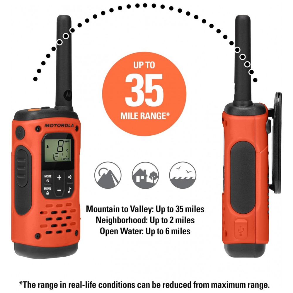 Rádio Comunicador Walkie Talkie Motorola Solutions T605_H2O Rádio FRS Portátil Bidirecional 22 Canais (563 km) Recarregável Emergência