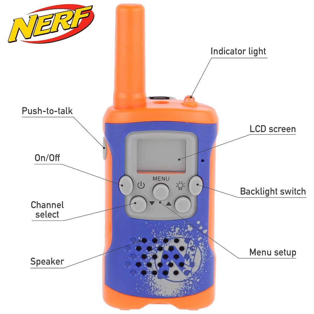 O Walkie Talkie NERF Sakar foi desenvolvido para proporcionar comunicação confiável em ambientes externos e internos, ideal para atividades ao ar livre, expedições e jogos. Equipado com 22 canais, frequência VHF (136-174 MHz) e antena flexível de alta performance, oferece transmissão de voz estável e clara em até 16 km, conforme condições ideais de uso. A construção resistente conta com classificação IP65 de impermeabilidade, garantindo proteção contra poeira e jatos d’água, tornando-o adequado para uso em diversos ambientes.