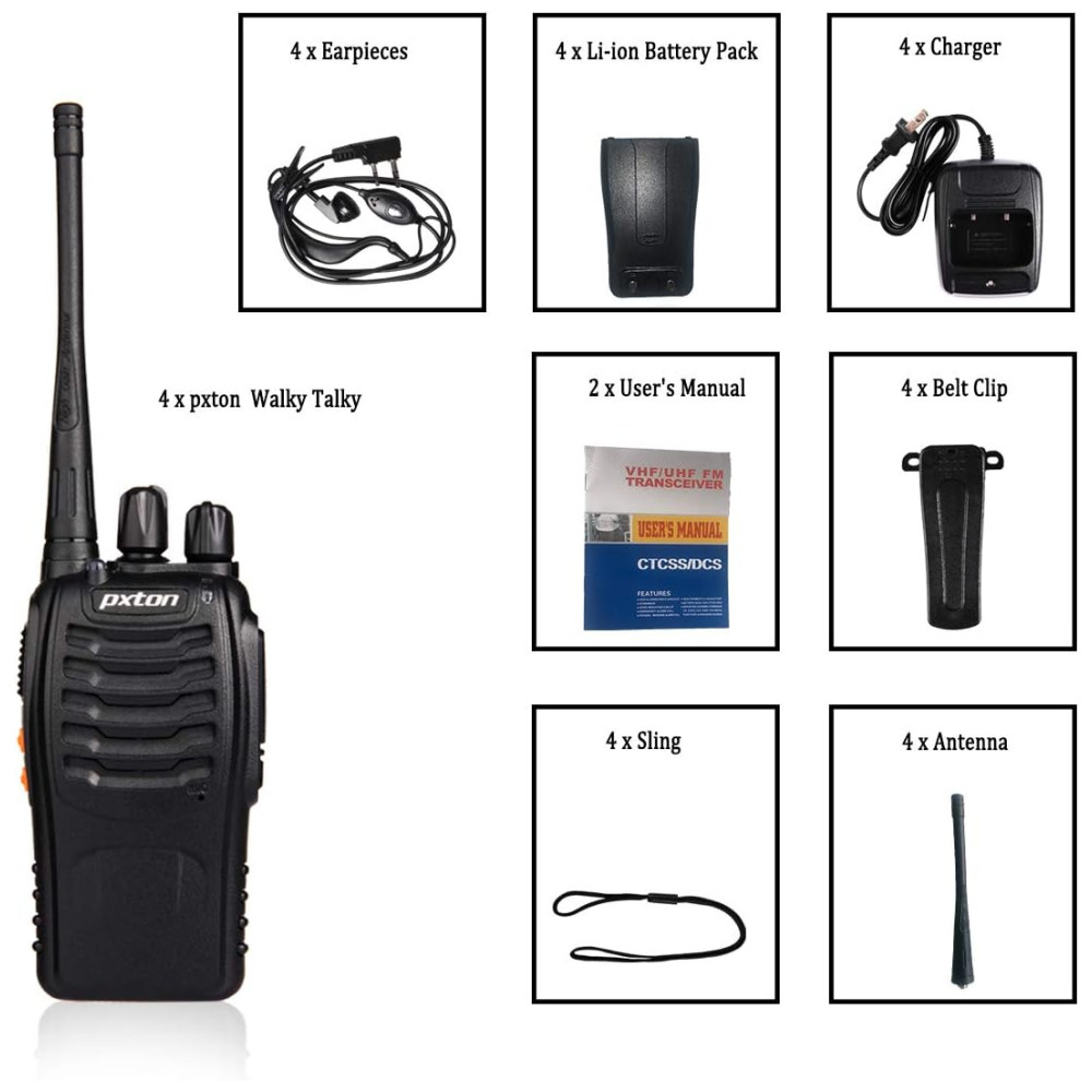 Rádio Comunicador Walkie Talkie Pxton Longo Alcance para Adultos com Fones16 Canais Recarregáveis Bateria Li-ionLanterna e Carregador (4 Unidades)