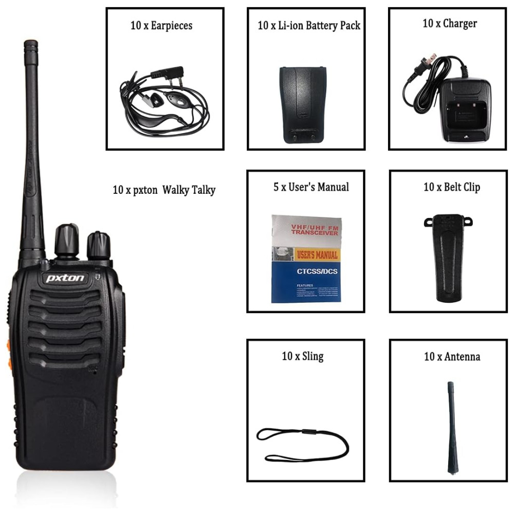 Rádio Comunicador Walkie Talkie Pxton para Adultos 16 Canais Alcance Longo Recarregáveis com Lanterna 10 Unidades