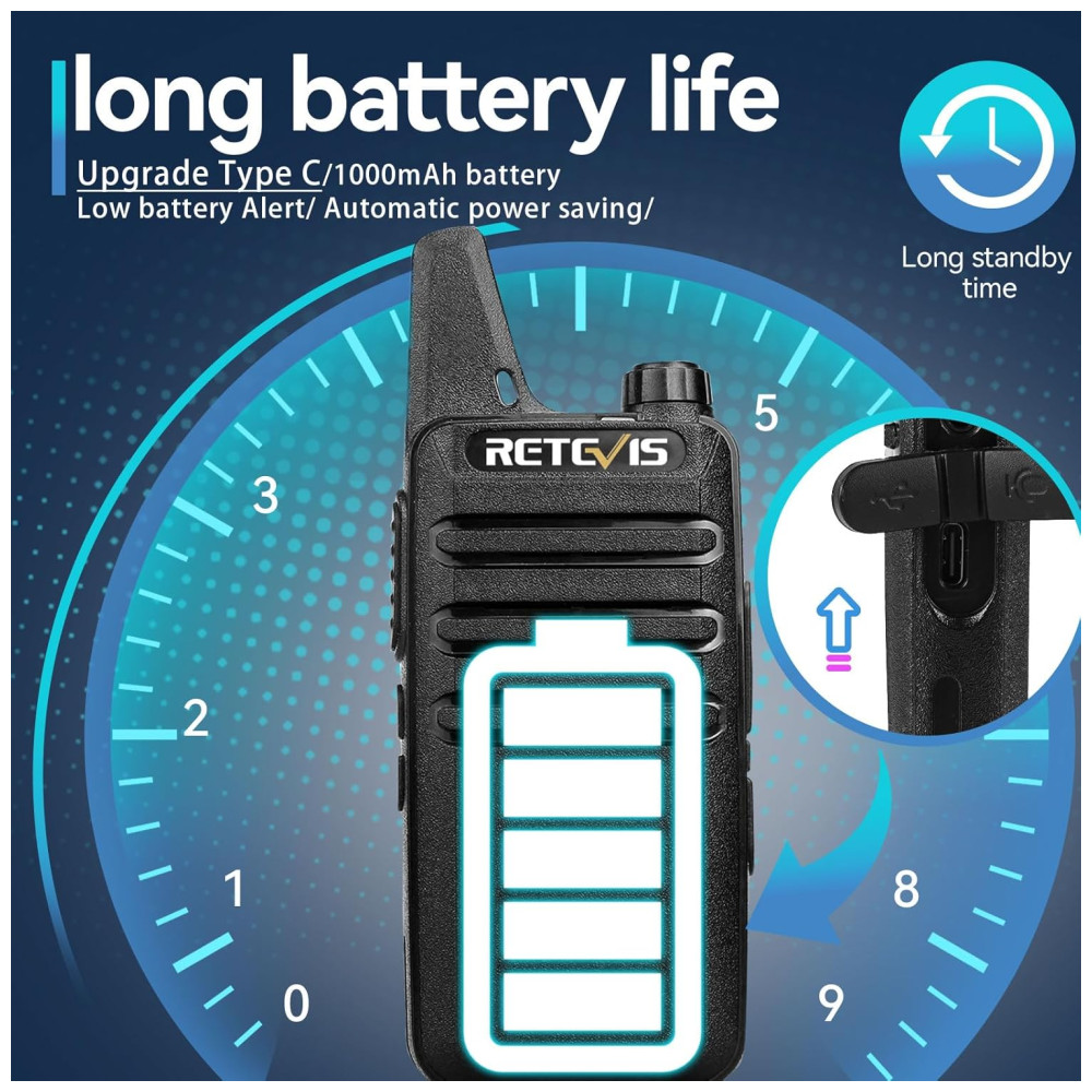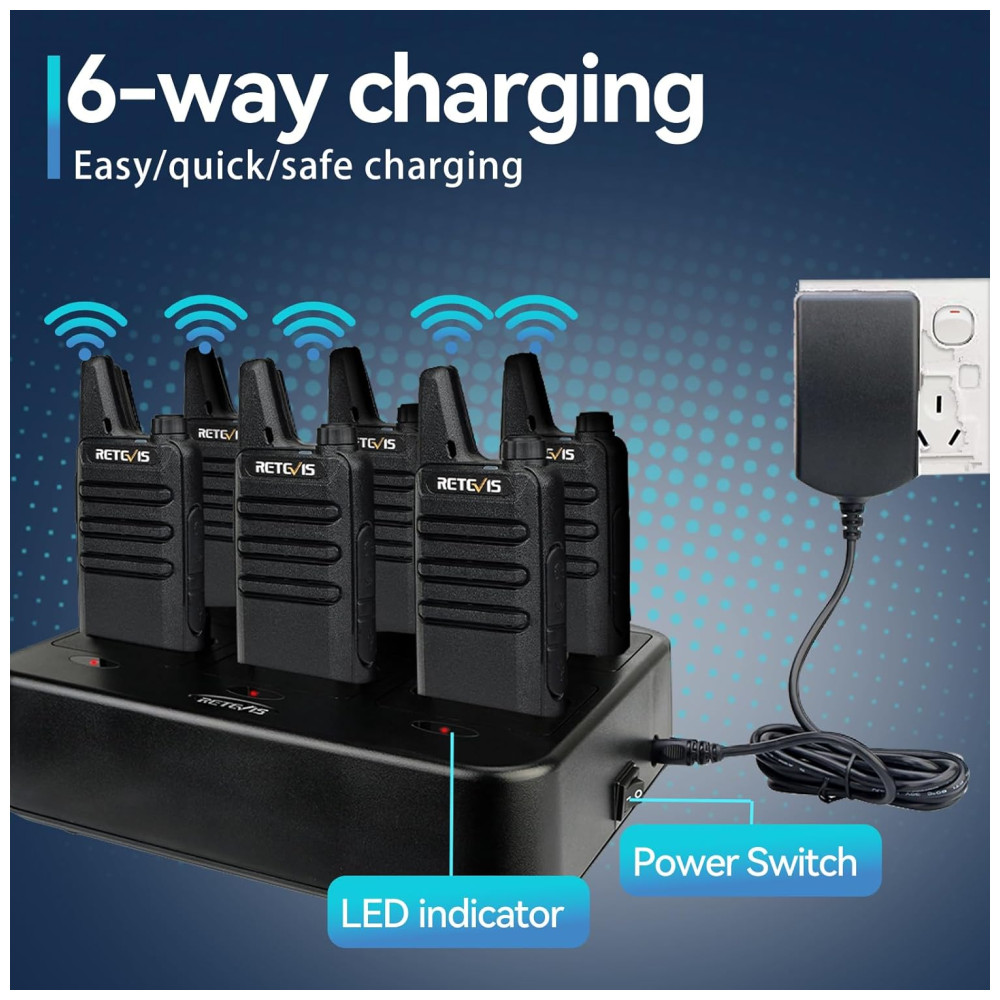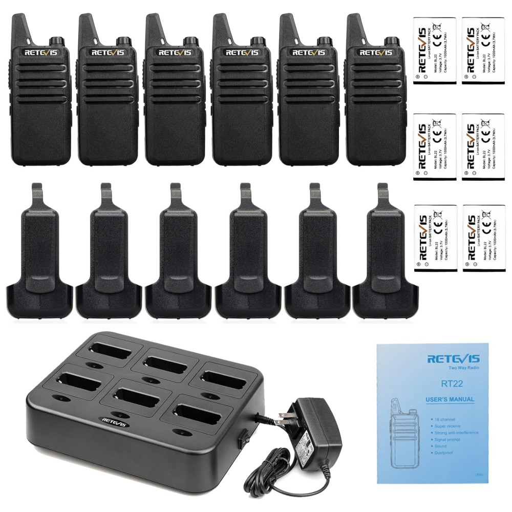Rádio Comunicador Walkie Talkie Retevis RT22 Recarregável Rádio de Mão Livre Rádio Bidirecional (6 Unidades) com Carregador Multicarregamento