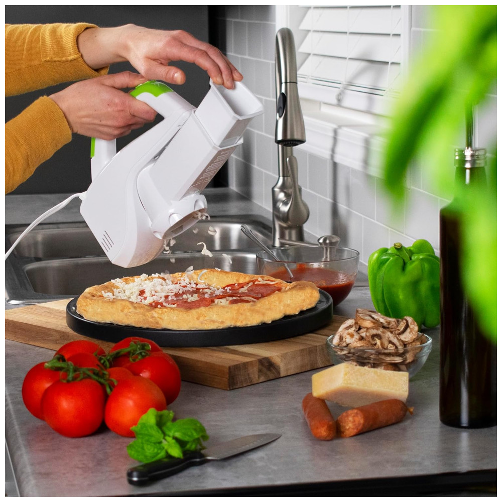 A maneira rápida e conveniente de fatiar ou ralar vegetais, frutas e queijo para deliciosas saladas, sopas, pizzas, tacos, sobremesas e muito mais.