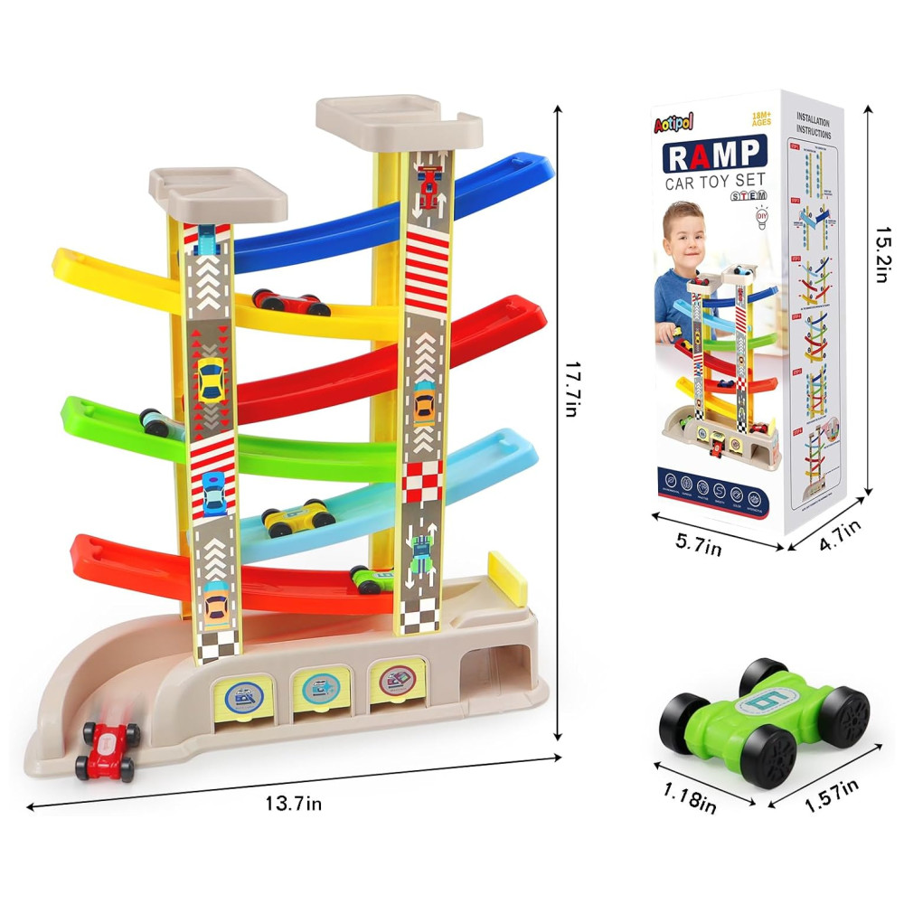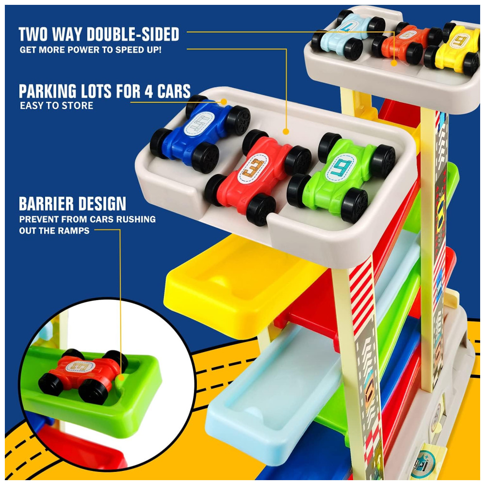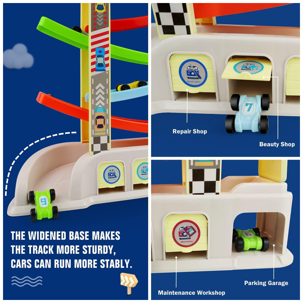 Essa é uma rampa de carros montessori, projetado especialmente para meninos e meninas de 2 anos ou mais. Em vez de brinquedos comuns de corrida de rampa, este brinquedo possui 2 estacionamentos, 6 rampas coloridas brilhantes, 3 garagens, um posto de gasolina, uma oficina e um estúdio de detalhamento de automóveis, que simula situações de trânsito da vida real. Os pequenos pilotos de corrida aproveitam o sentido visual e a emoção das corridas Este brinquedo incentiva o desenvolvimento da coordenação motora e visual do seu filho e aumenta a capacidade de atenção. Além disso, incentiva as crianças a cooperarem e se revezarem para brincar em seus carros de corrida. É adequado para crianças brincando em casa dentro de casa ou como atividade ao ar livre. O brinquedo de rampa de carro é feito de material ABS de alta qualidade, livre de BPA e tingido com tinta brilhante não tóxica à base de água. Totalmente testado para os mais altos padrões dos EUA. Não há preocupação com rodas caindo ou peças se desfazendo.