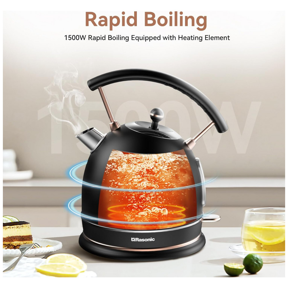 Rasonic Chaleira Elétrica Retrô Inox 18L 1500W Silenciosa Termômetro Desligamento Automático e Proteção Anti-Evaporação
