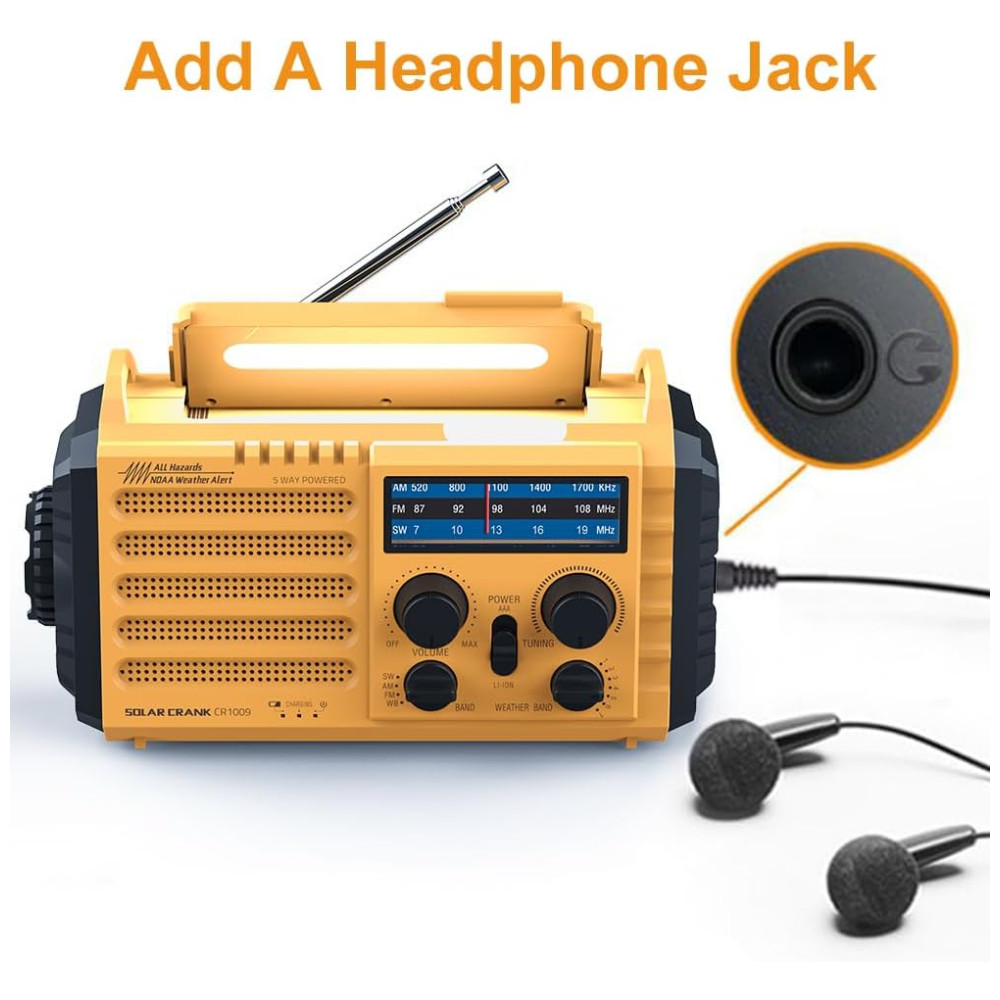 Raynic Rádio AM FM WB e NOAA 2000mAh Com Bateria Solar ou Manivela de Recarga USB