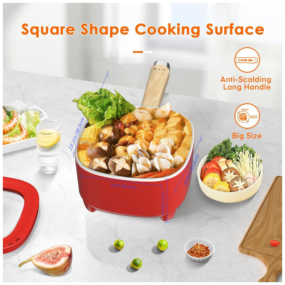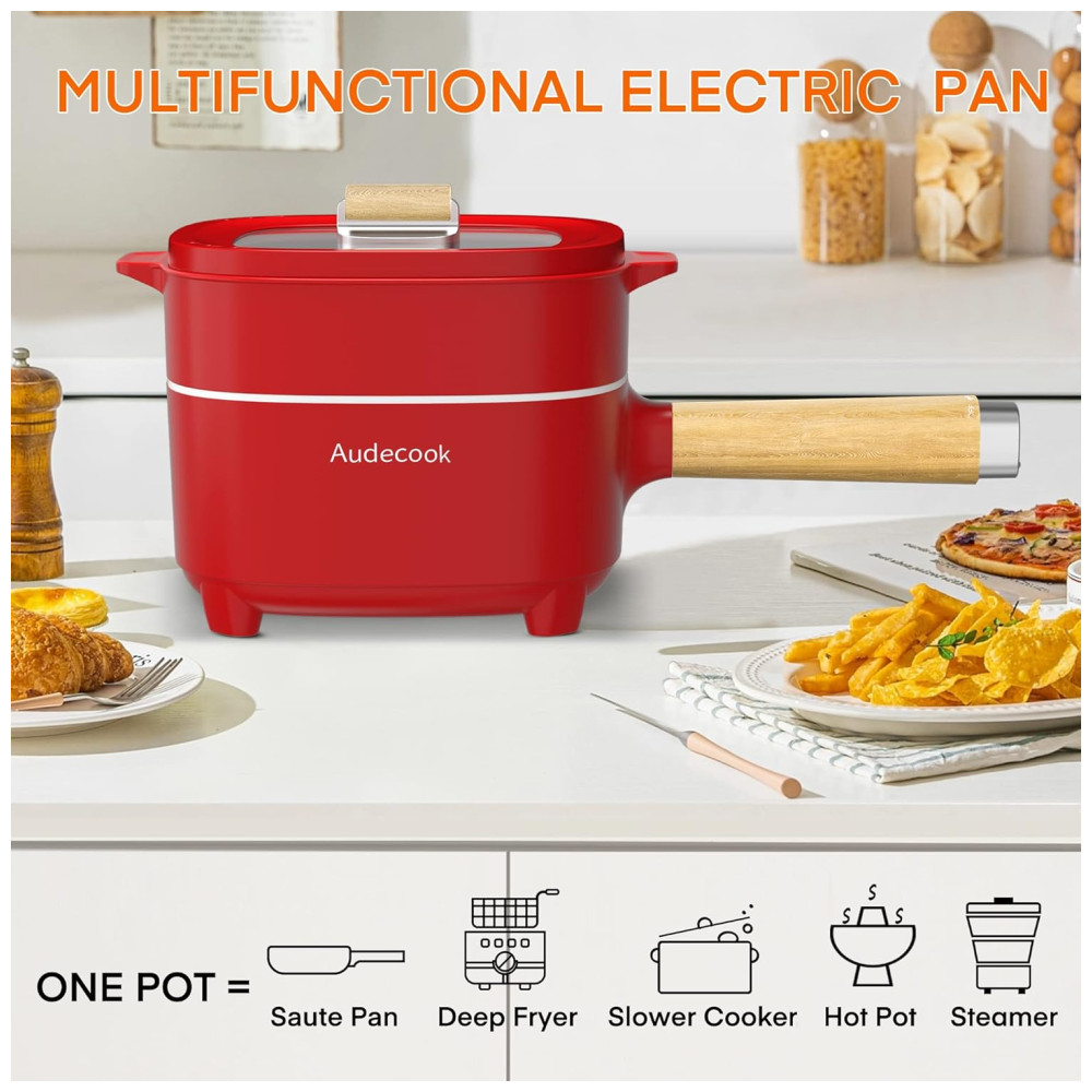 Panela Elétrica Audecook 2L com Vapor Revestimento Cerâmico Antiaderente Controle Duplo de Potência Espátula de Silicone Inclusa Vermelha