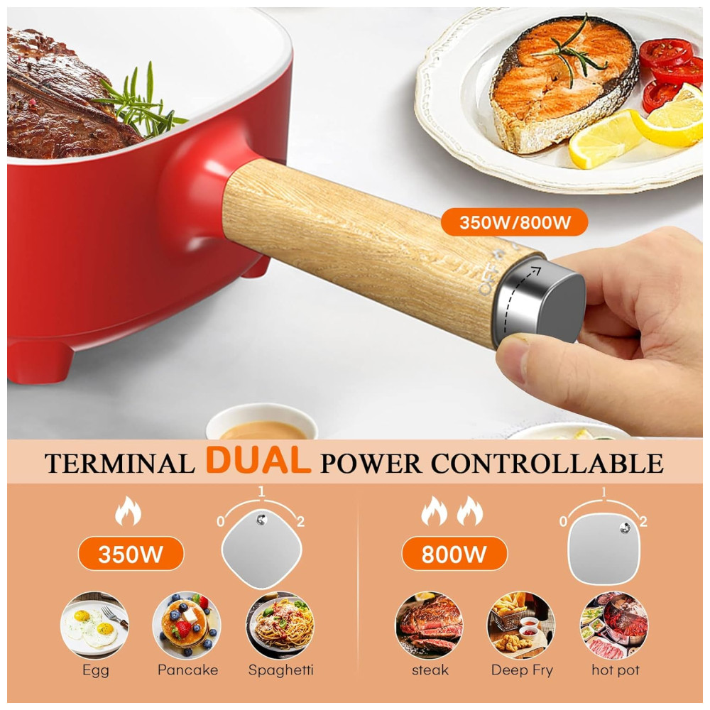 Pesando cerca de 1,53 kg, o formato compacto e leve torna a panela ideal para uso em casas, trailers, dormitórios, hotéis e acampamentos. Seu método de controle é por toque ou botão mecânico, facilitando o manuseio. Não é compatível com lava-louças.
