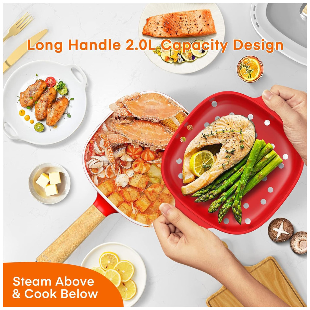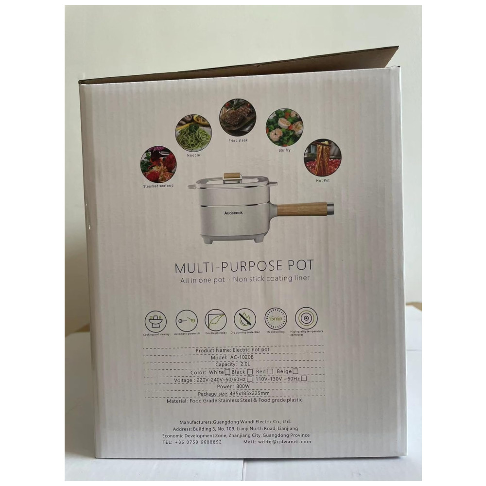 A Audecook Hot Pot Elétrica possui capacidade de 2 litros e chama atenção pelo design profissional multiuso, combinando cozimento inferior e vapor superior simultaneamente, possibilitando cozinhar vegetais e carnes juntos ou separadamente respeitando níveis suaves de cozimento para preservação de vitaminas e nutrientes. A inserção de vapor é removível para maior versatilidade.