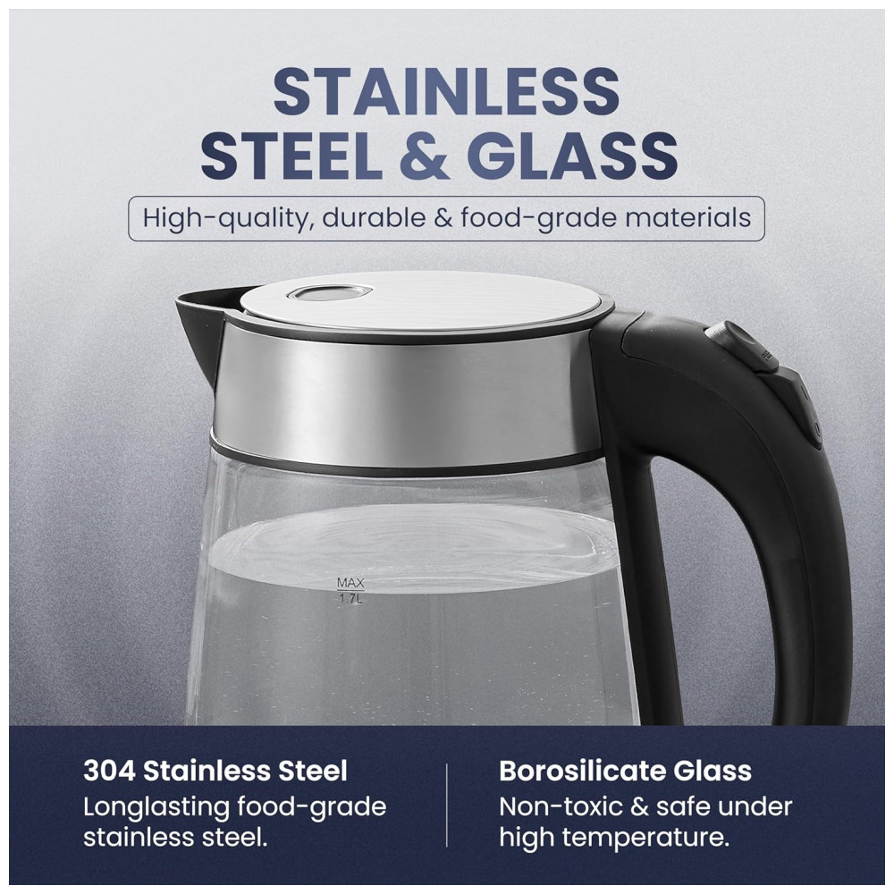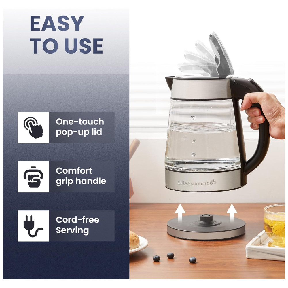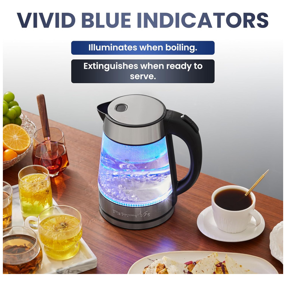 Chaleira Elétrica Elite Gourmet EKT602 de Vidro Livre de BPA Base 360 sem Fio Design com LED Azul Estiloso Função de Desligamento Automático – 17L