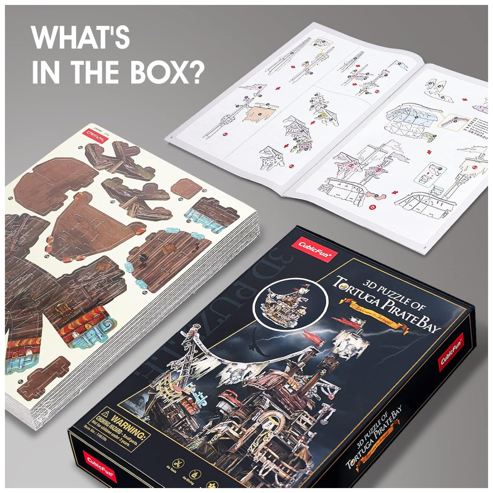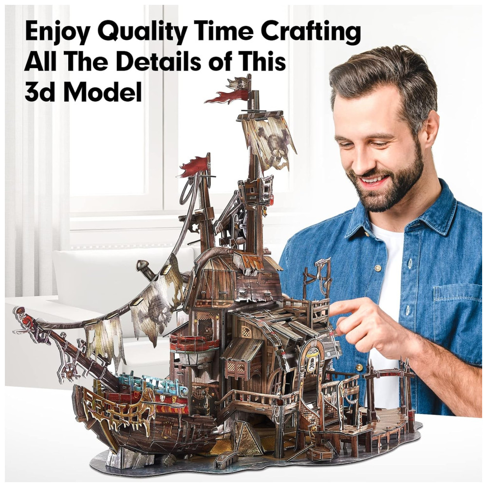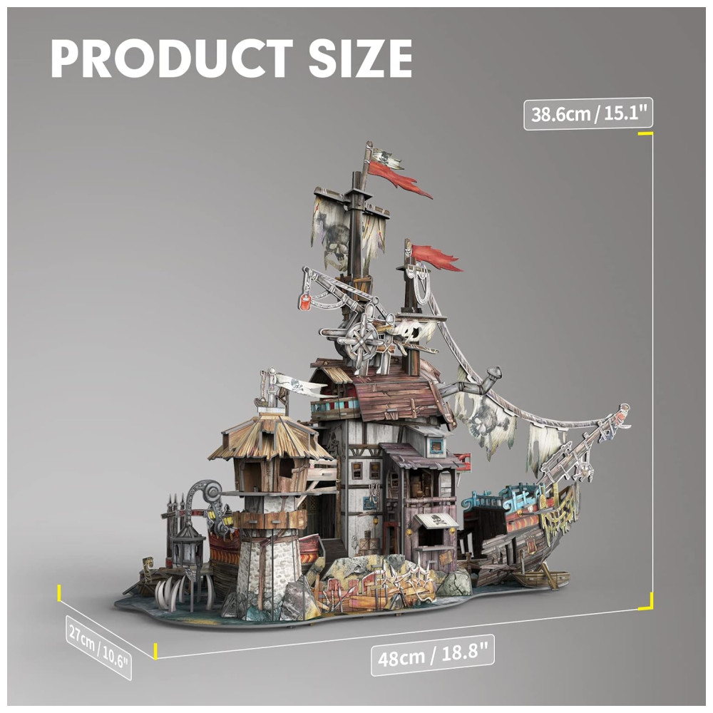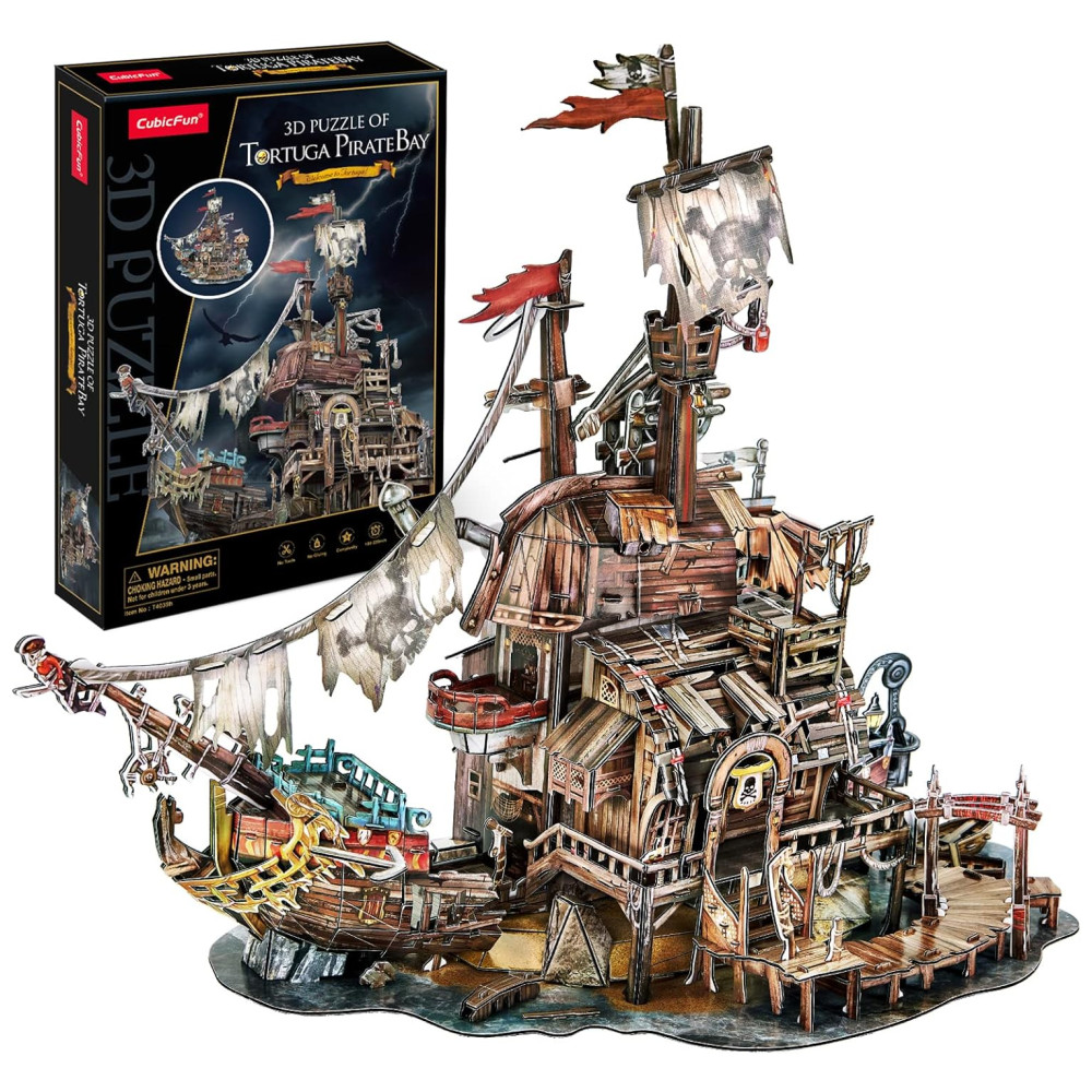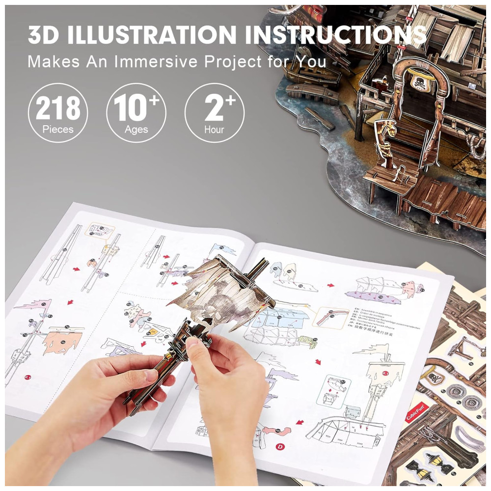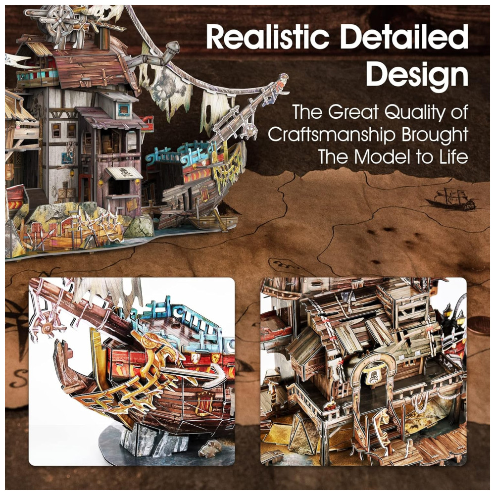 Quebra Cabeças 3D para Adultos Tema Casa dos Piratas Navio Naufrágio com 218 Peças CubicFun T-3940 Marrom