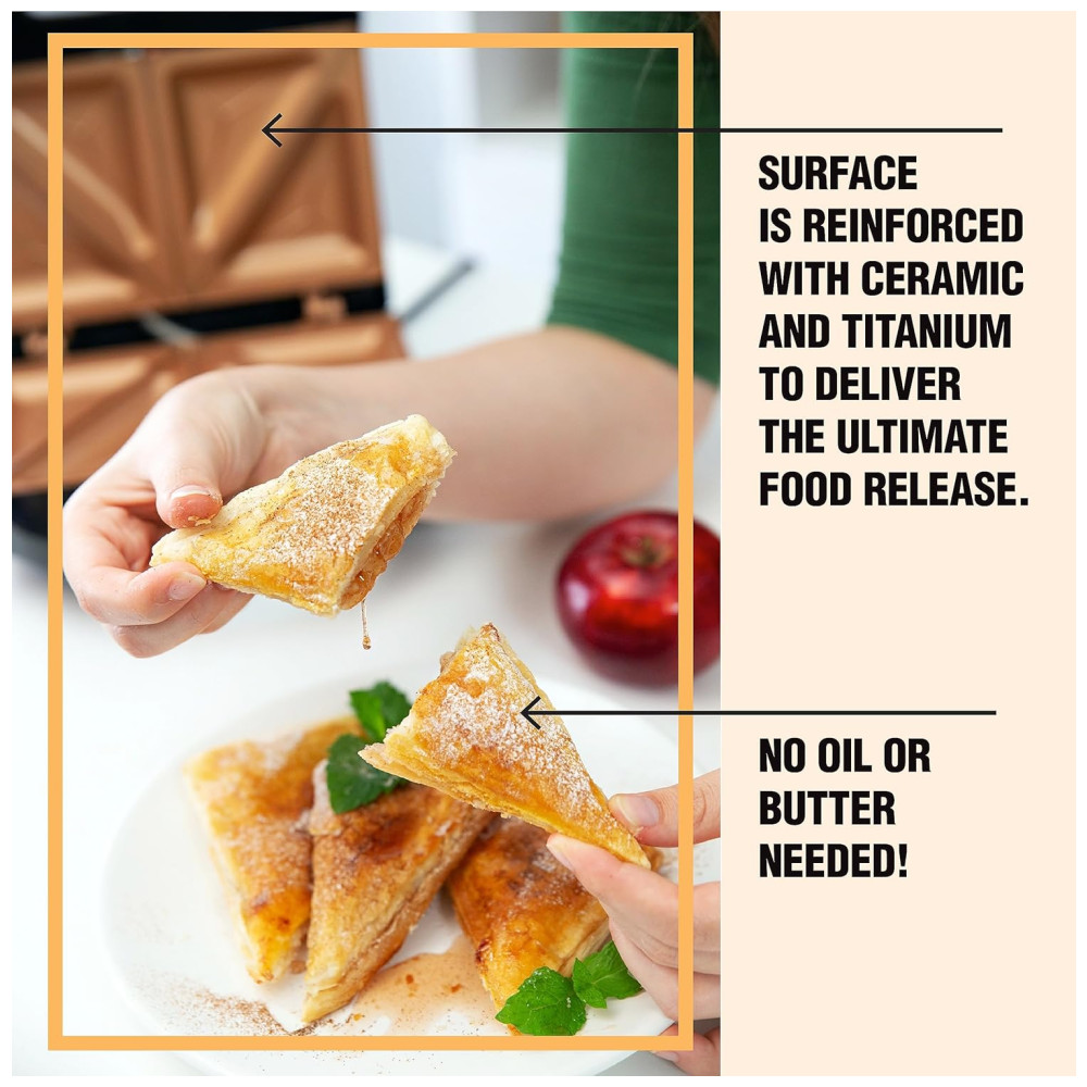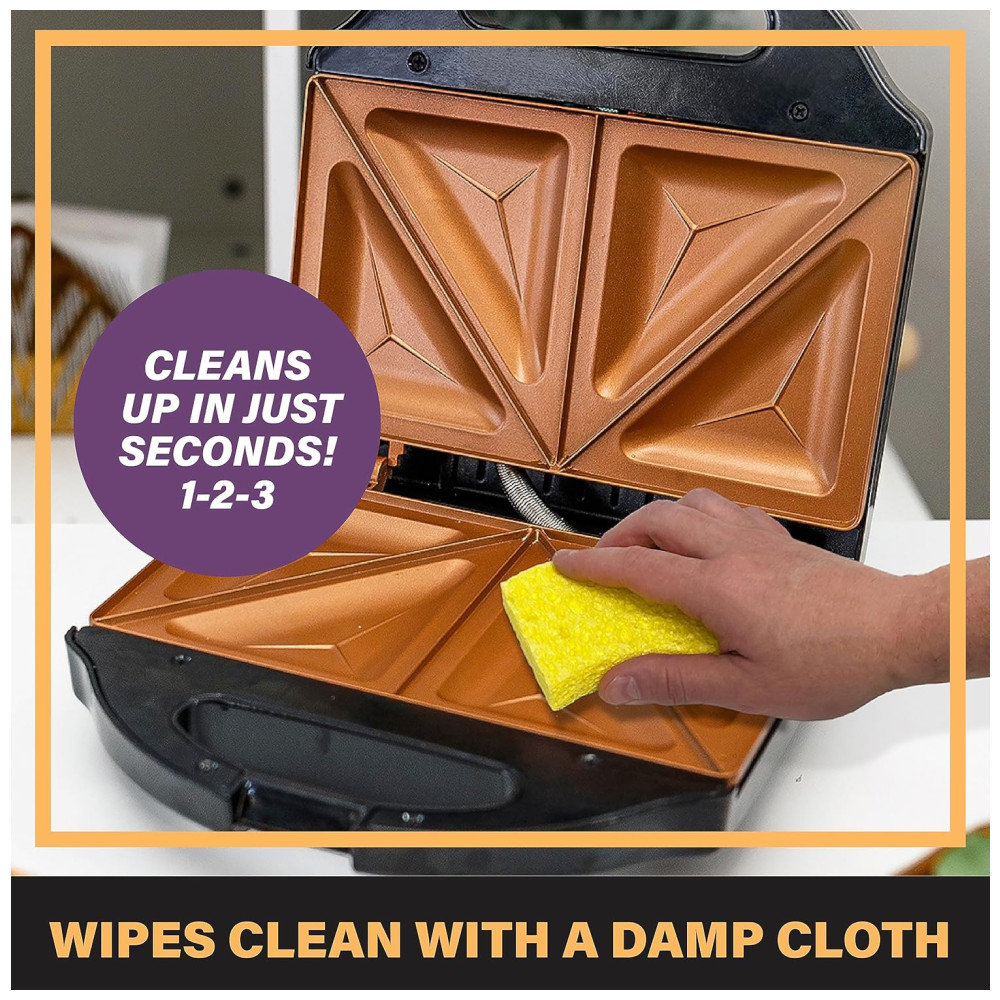 FÁCIL DE USAR faz quatro sanduíches perfeitamente torrados em menos de 5 minutos, do início ao fim