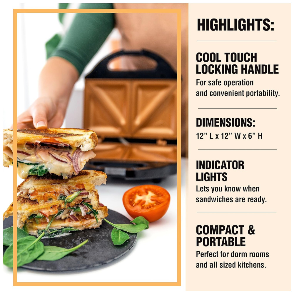 SANDUÍCHES EM MINUTOS Agora você pode desfrutar de um desempenho de alta qualidade com a sanduicheira antiaderente Gotham Steel, simples de usar e fácil de limpar