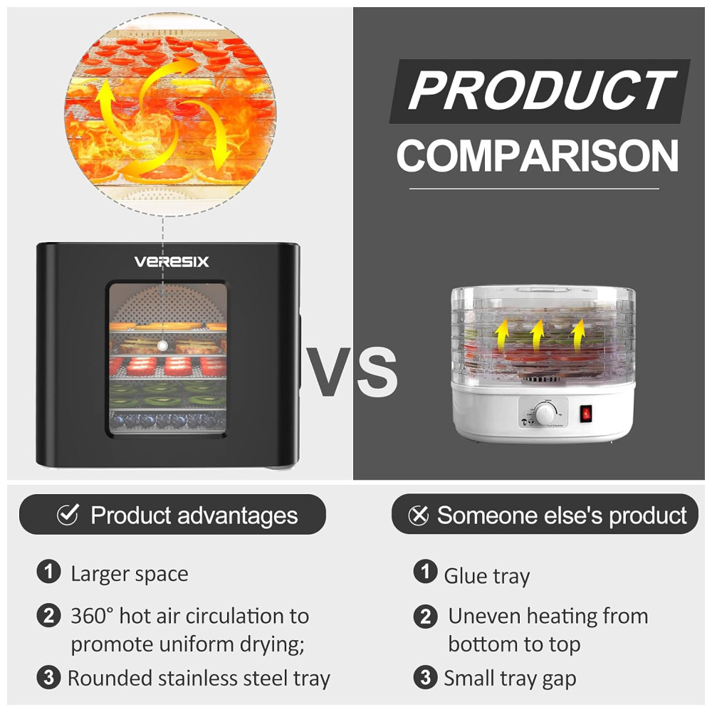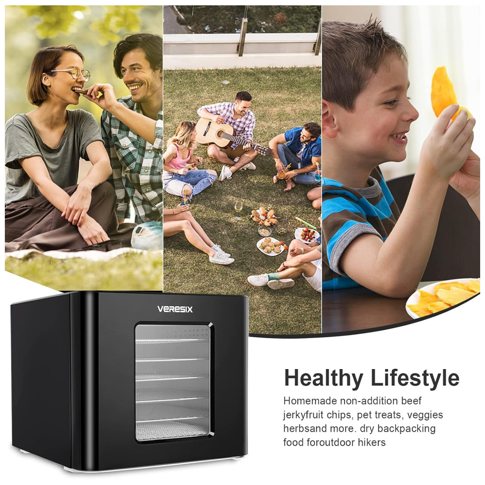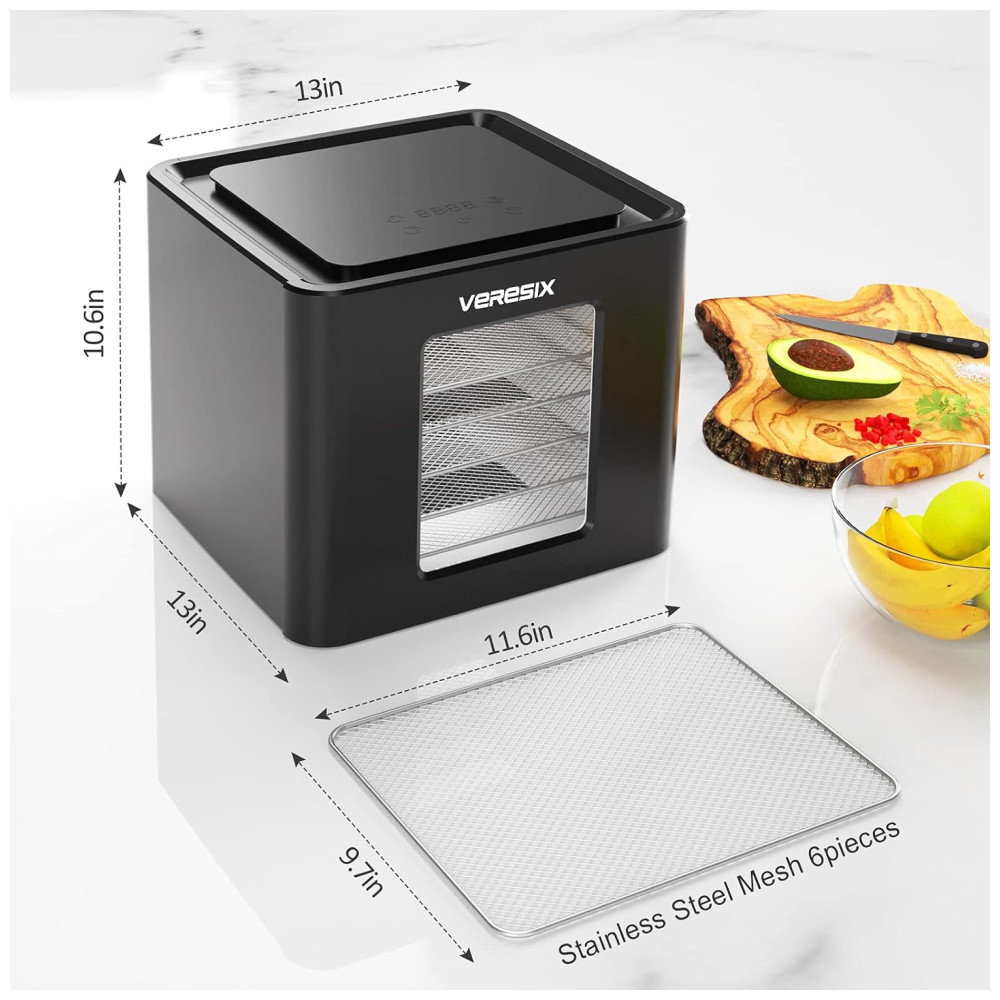 VERESIX Máquina desidratadora de Alimentos c 6 Bandejas Aço Inoxidável 400W 110V Preta