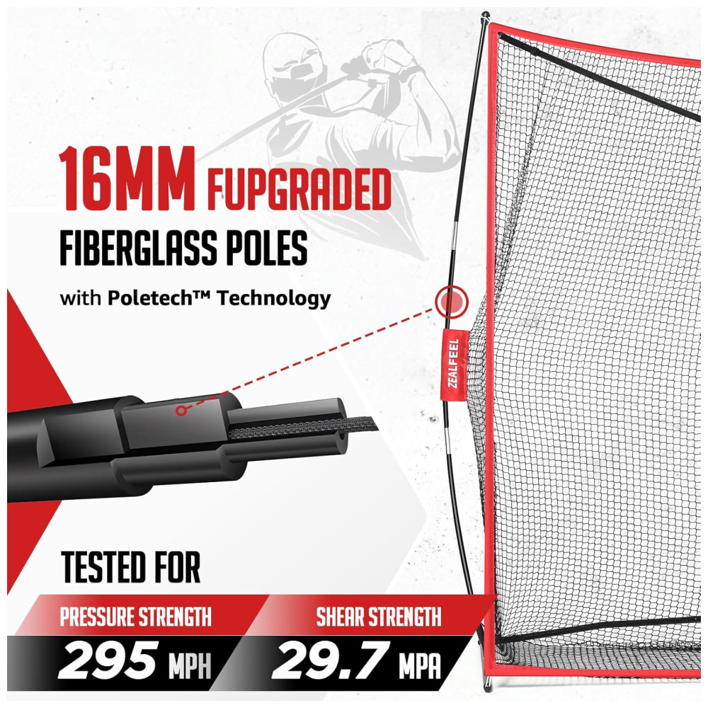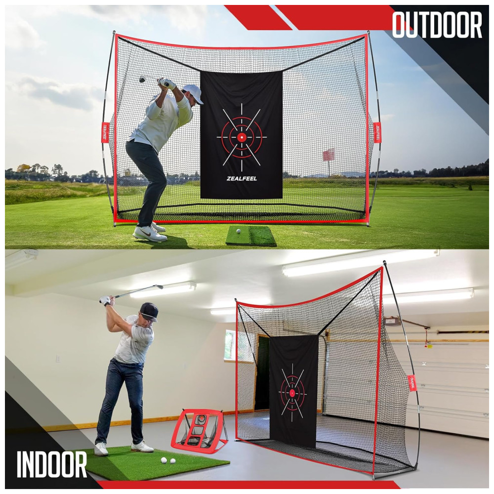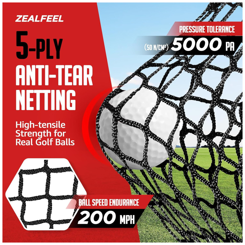 A Rede de Golfe ZEALFEEL possui rede de 5 camadas reforçadas contra rasgos, suportando impactos de bolas reais a até 200 mph. Ideal para treinos potentes e duradouros. Completa, inclui rede de golfe, tapete de golfe, rede de aproximação, 6 bolas de treino, 7 tees, estacas e bolsa de transporte. A rede de aproximação versátil possui 3 zonas de alvo para diferentes tipos de tacadas, permitindo praticar várias técnicas para aprimorar precisão e habilidade. Com hastes de fibra de vidro de 16mm, tecnologia Poletech, base metálica resistente, costuras reforçadas e montagem simples, essa rede é estável e durável. Pronta em minutos, pode ser usada em qualquer lugar, oferecendo praticidade e eficiência.