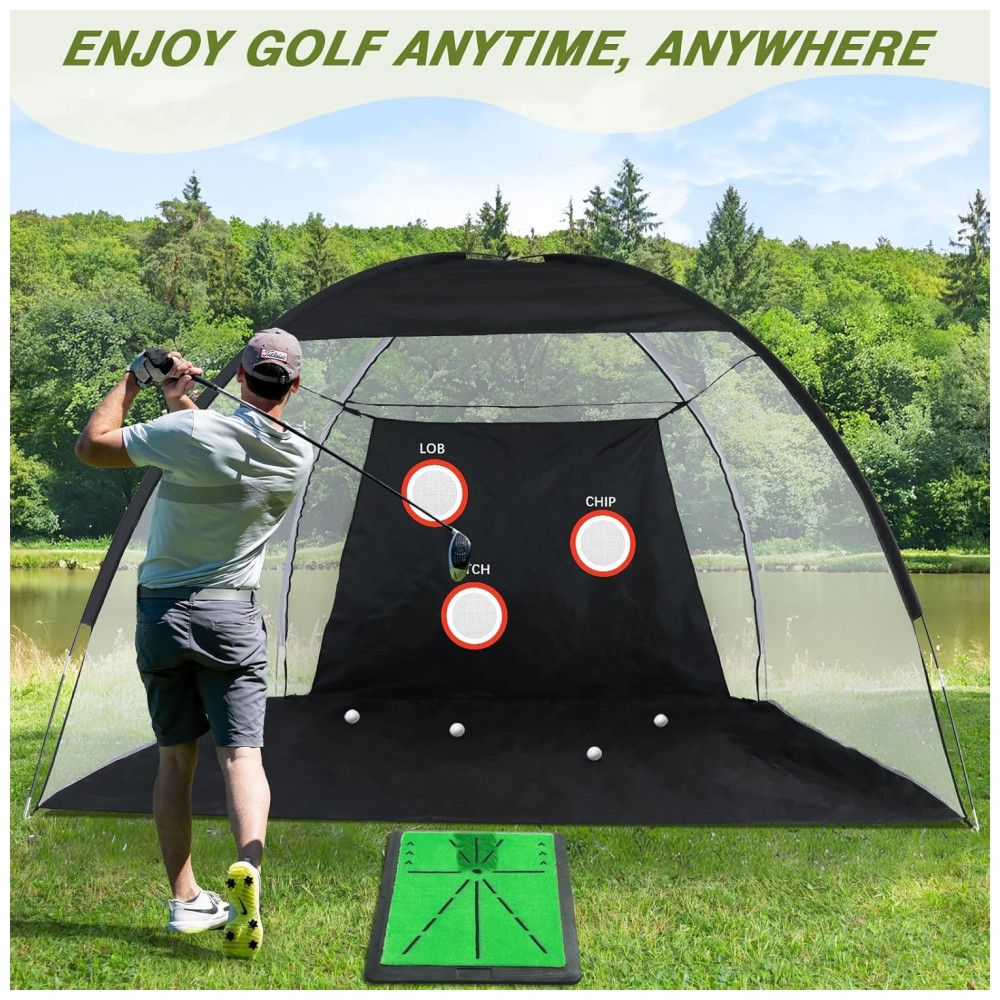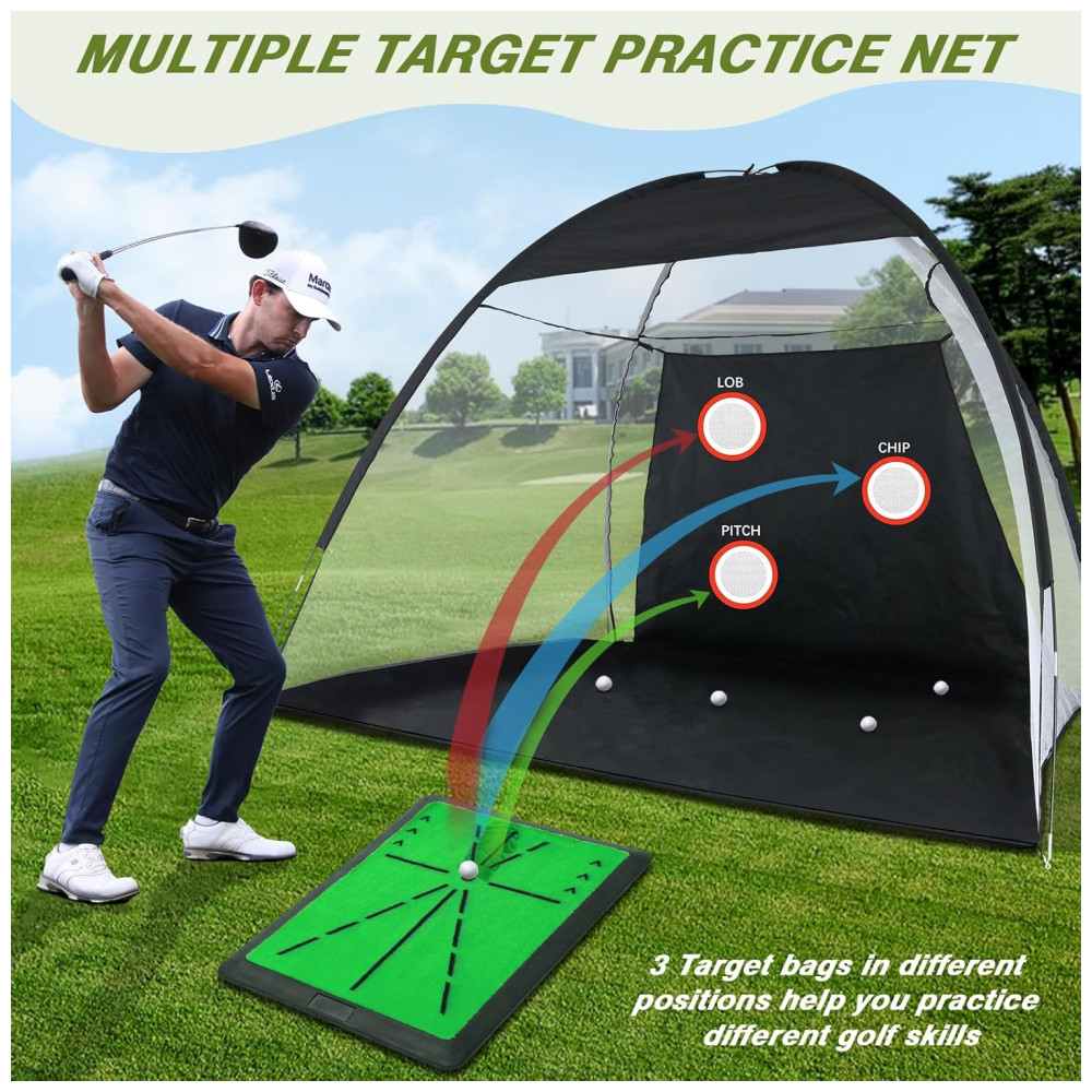 Rede de Golfe 3x21m c/ Tapete de Tacadas p/ Treino no Quintal Chipping Interno/Externo c/ Alvos – Presente Ideal p/ Amantes do GolfeFinbuco.