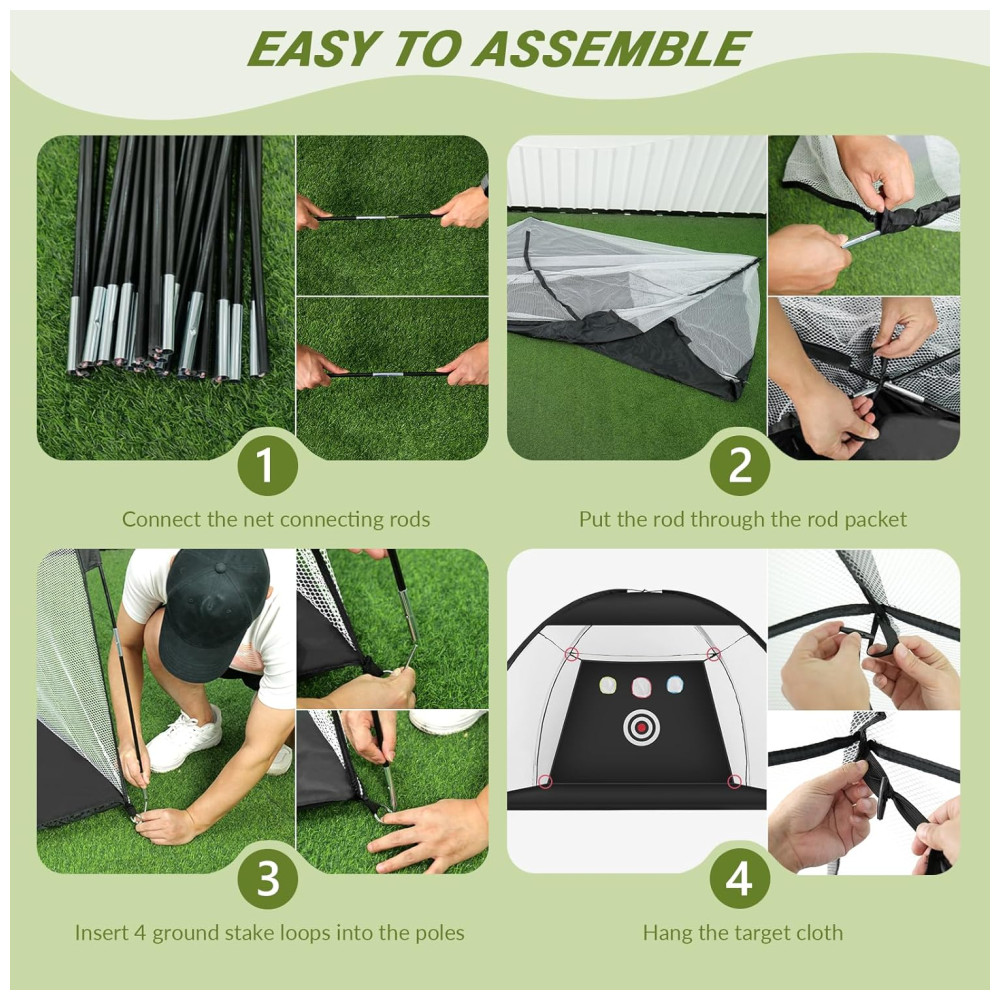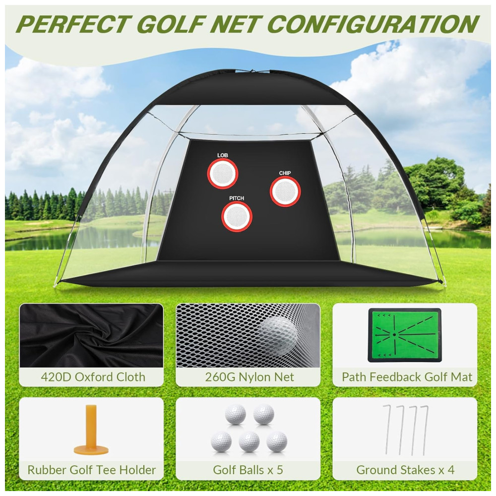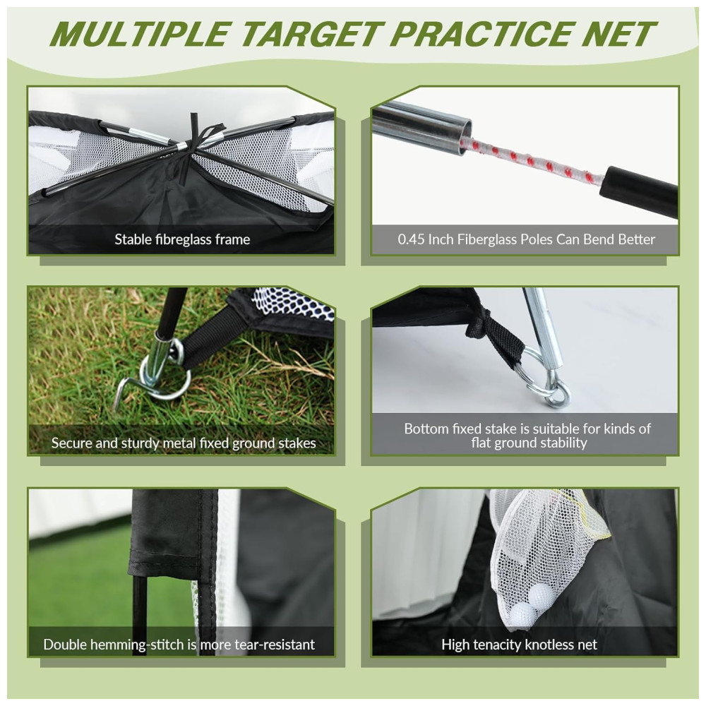 A rede de golfe 3X2,1m da finbuco permite praticar golfe de forma livre e versátil. Com 1 grande e 3 alvos de chipping, é ideal para aprimorar tacadas, swings e chips. Economize tempo e dinheiro treinando todos os tacos de golfe em casa. O tapete de tacadas oferece feedback visual, permitindo corrigir sua técnica. Com espaço suficiente para treinar swings completos, é perfeita para iniciantes e avançados. Fácil de montar e transportar, oferece uma experiência realista de campo de golfe em qualquer lugar. Um presente prático e surpreendente para os amantes do golfe.