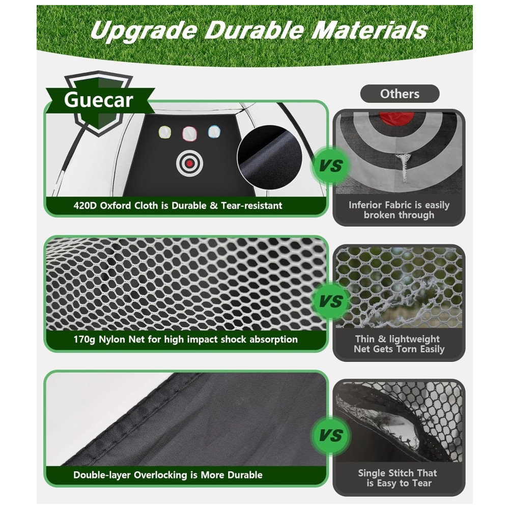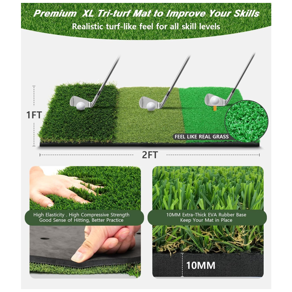 Rede de Golfe 3x21m com Tapete TriTurf Kit Completo para Treino de Tacadas em Casa para Dirigir Aproximar e Treinar o Swing PretoGuecar.