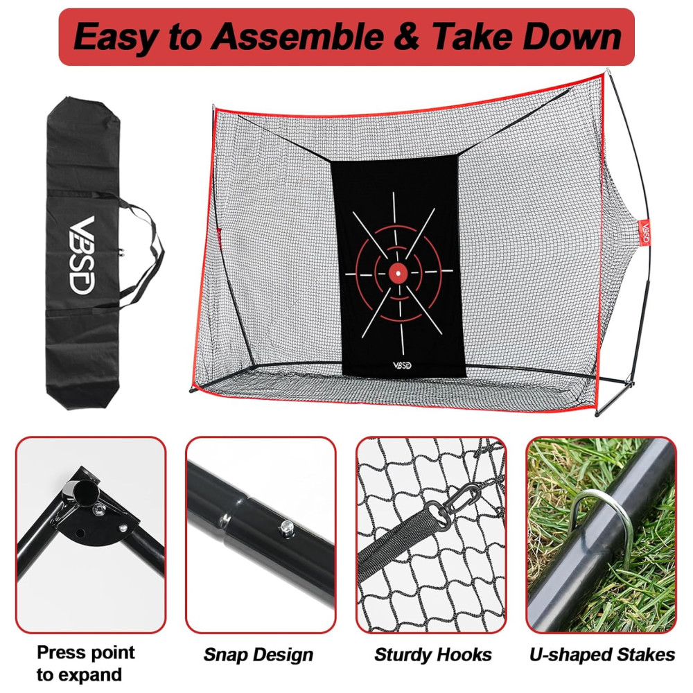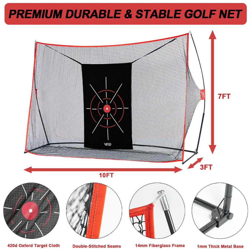 A Rede de Golfe VBSD se destaca por sua durabilidade e estabilidade excepcionais. Feita de tecido alvo premium 420D Oxford e rede de nylon de 5 camadas resistente a rasgos e absorção de choque, suporta impactos de bolas de golfe a velocidades de até 200 mph. A estrutura de fibra de vidro de 14 mm evita a deformação, enquanto a base de metal robusta de 1 mm e estacas mantêm a rede de golfe firmemente ancorada, mesmo em condições ventosas. Transforme qualquer espaço em seu próprio campo de treino pessoal, melhorando suas habilidades a qualquer hora, em qualquer lugar.