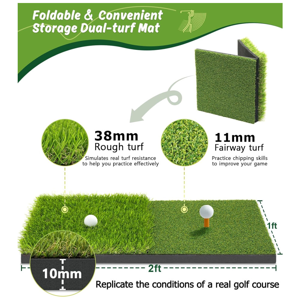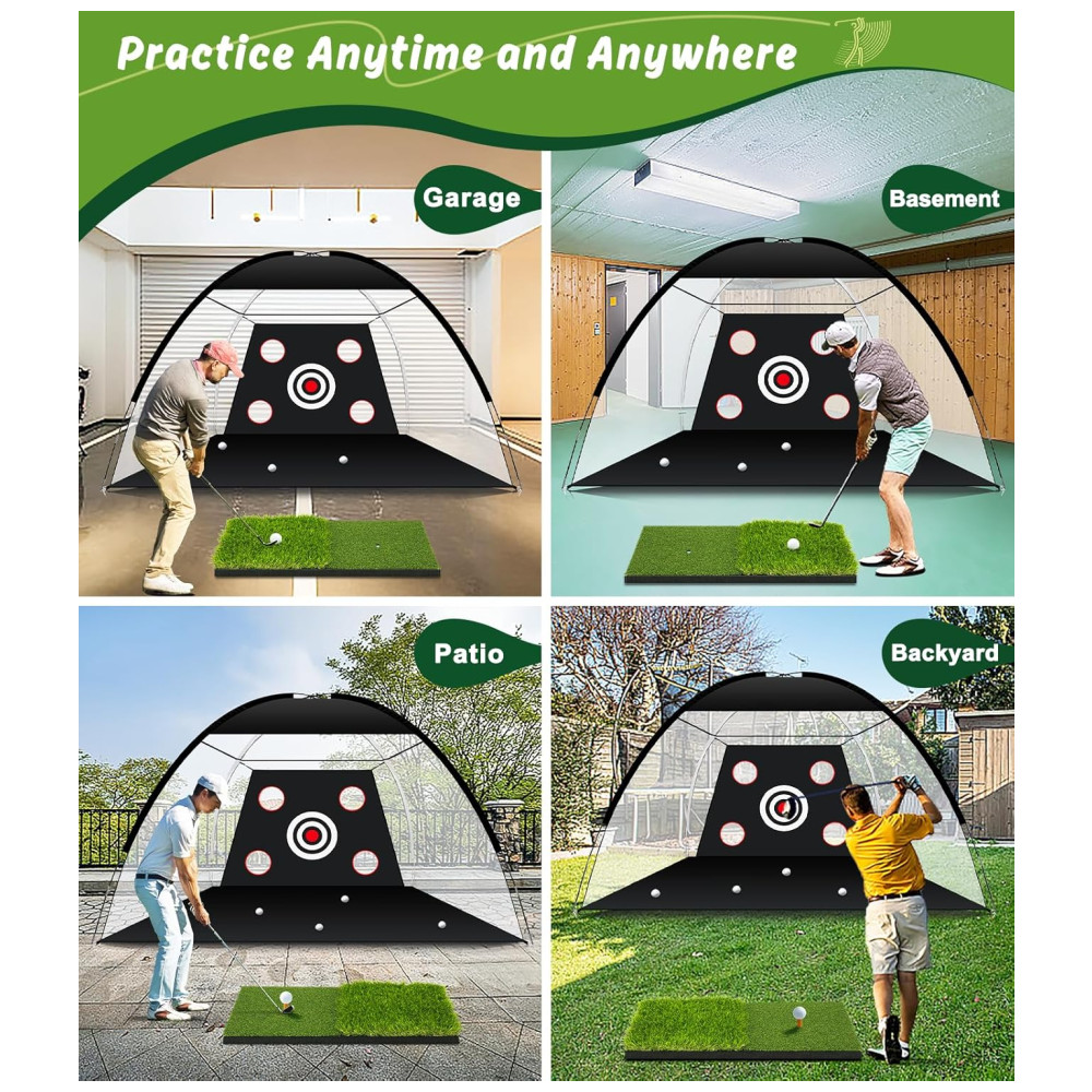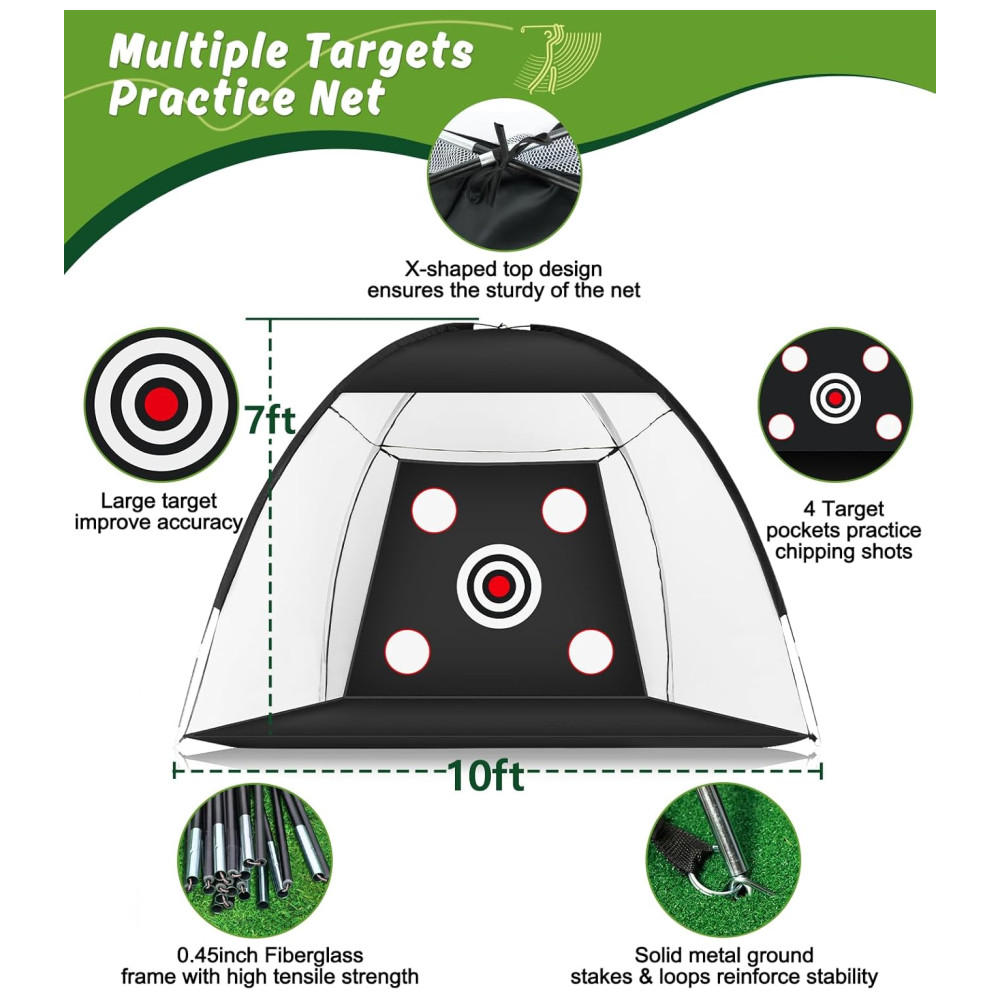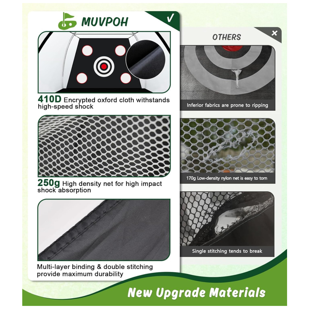 Rede de Golfe MUVPOH 3×21 metros com Tapete de Golfe DualTurf para Treino de Tacadas Alvos Múltiplos Auxílio para Homens e Amantes do Golfe