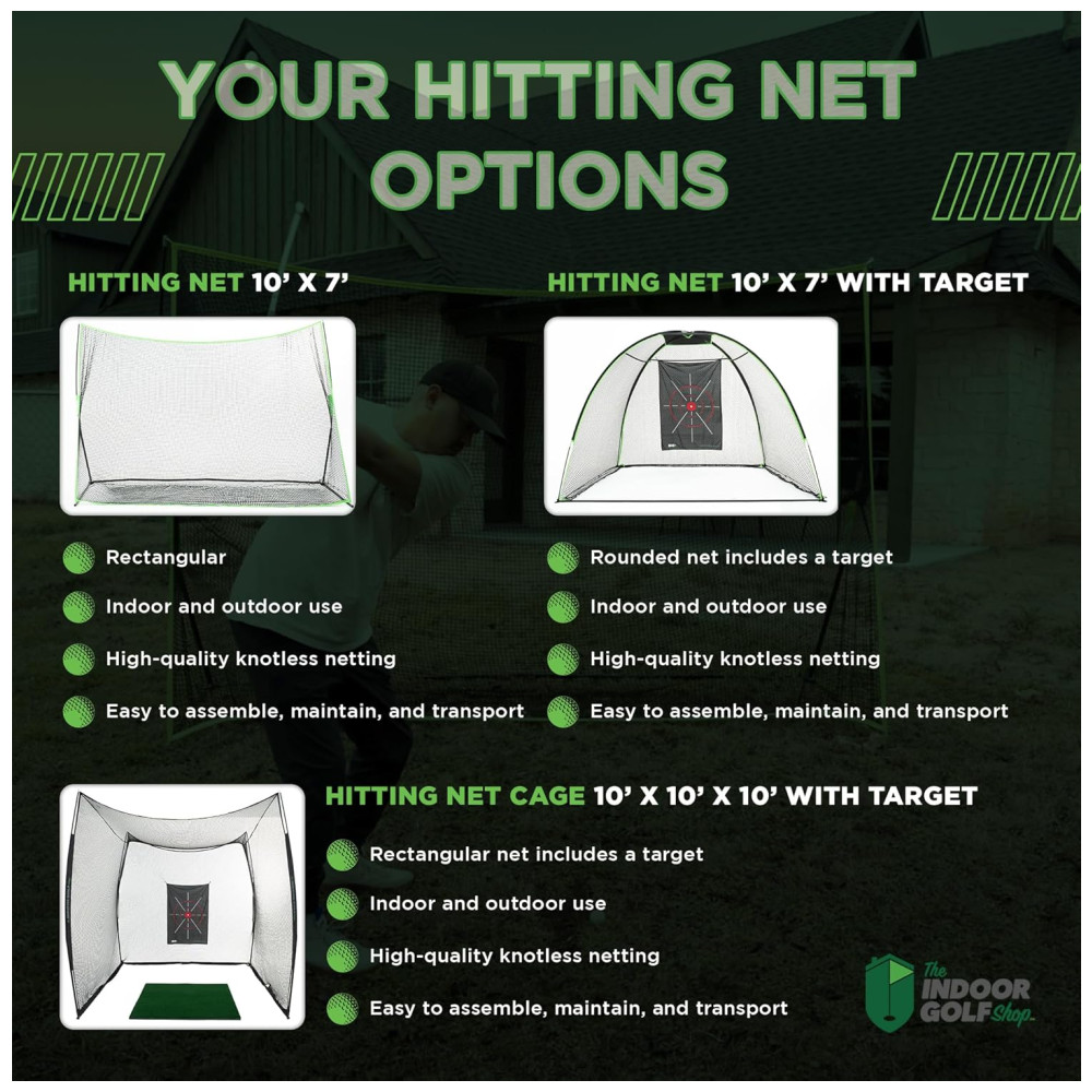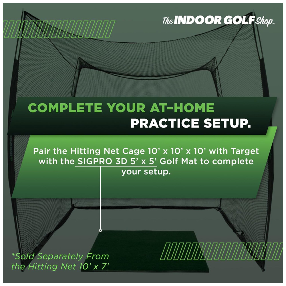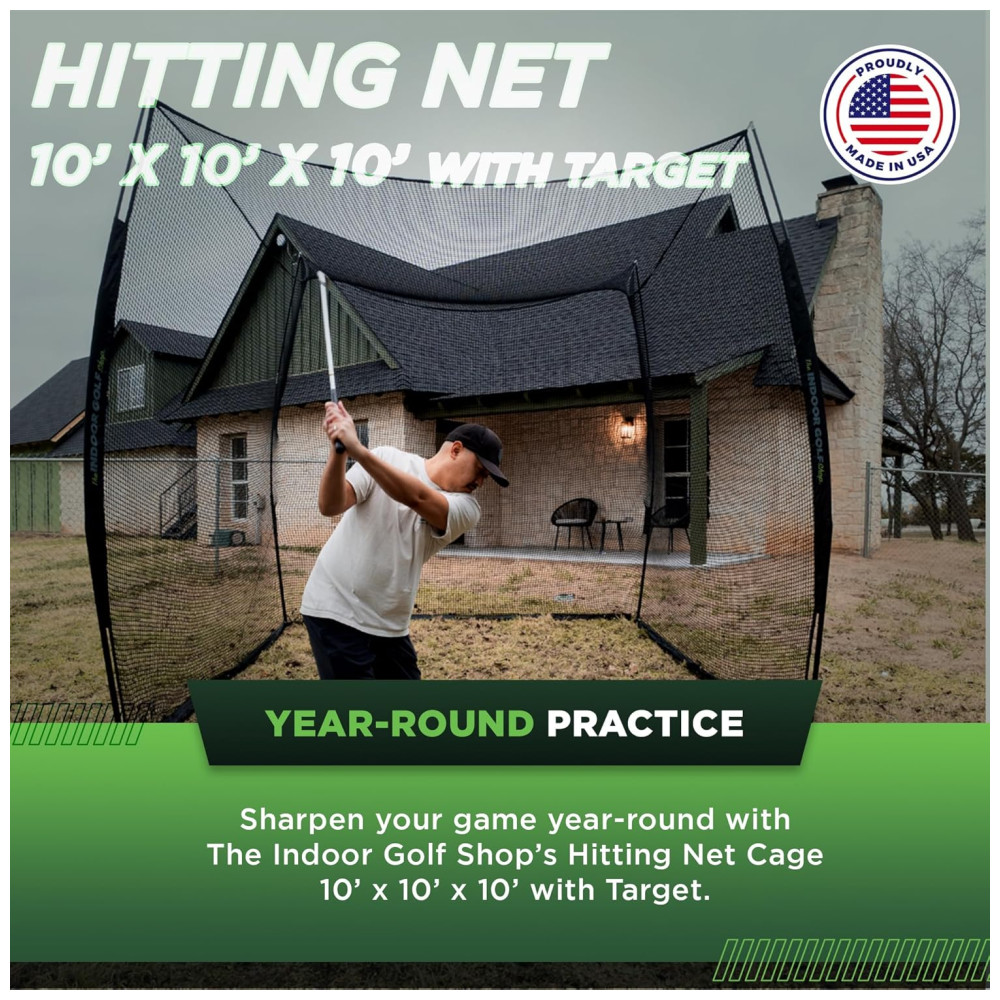 Rede de Treino de Golfe 10 x 10 x 10 com Alvo – Rede de Golfe sem Nós para Prática Interna e Externa Pronta para Montar e UsarThe Indoor Golf.