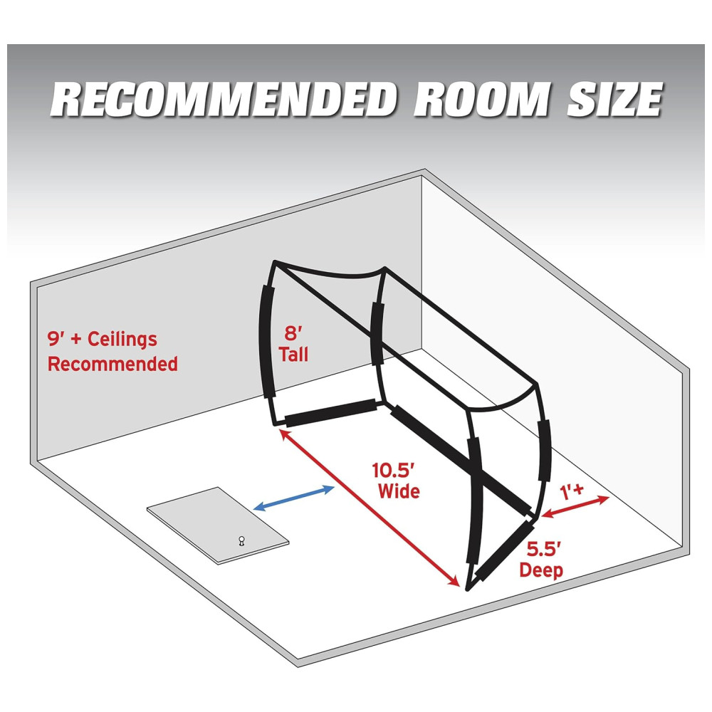 A rede permite a prática de tacos de loft alto, como cunhas, chips e até flop shots, e protege seu teto durante o treinamento interno. Com um tamanho de 3m x 2,4m, acomoda golfistas de todas as habilidades, destros ou canhotos, e a profundidade da rede mede 1,67 metros. A configuração é rápida e fácil, levando cerca de 5 minutos para montar, e o estojo de transporte incluído torna o armazenamento simples quando necessário.